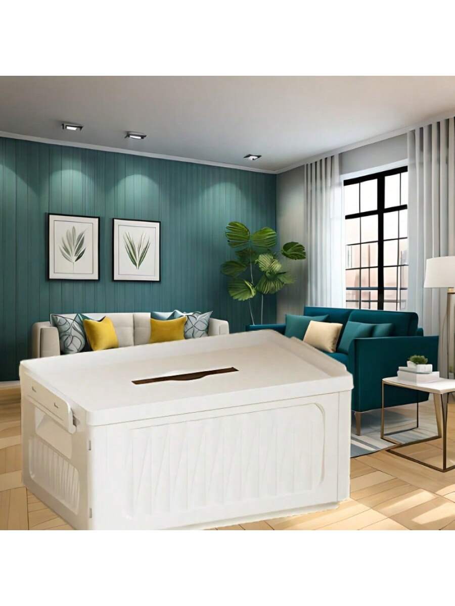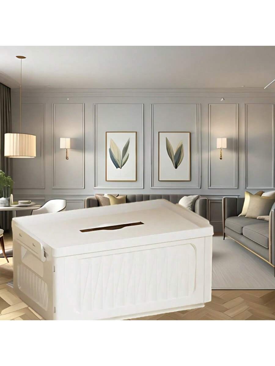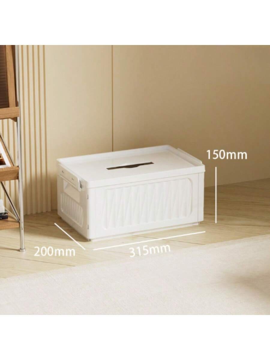 Compacta caja de almacenamiento plegable en blanco tamaño pequeño. Ideal para organizar objetos pequeños como joyería o accesorios. Diseño práctico que ahorra espacio. Fácil de montar y guardar. Solución perfecta para mantener el orden en espacios reducidos.