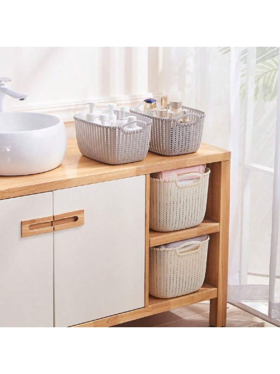 Práctica cesta de almacenamiento en ratán sintético color gris (21x13x10 cm). Diseño moderno y versátil que se adapta a múltiples usos. Material duradero que mantiene su forma con el tiempo. Perfecta para organizar objetos diversos mientras añades un toque de estilo a tus espacios.