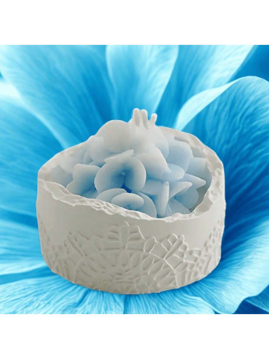 Vela decorativa con hortensias azules y una fragancia inspirada en las campanas de viento: notas frescas y ligeramente florales. Perfecta para armonizar espacios con un toque de serenidad y elegancia visual. ¡Un detalle que enamora!