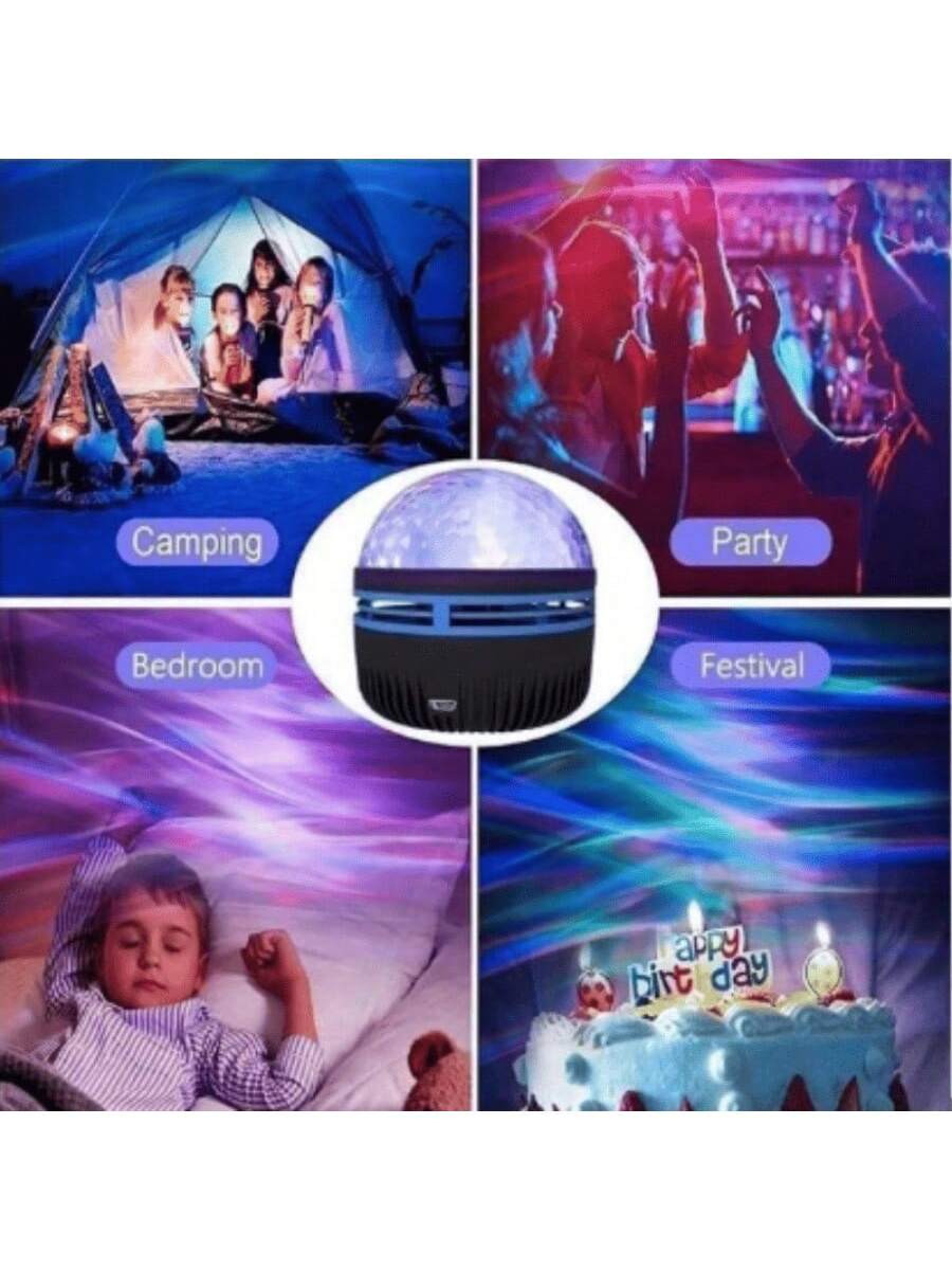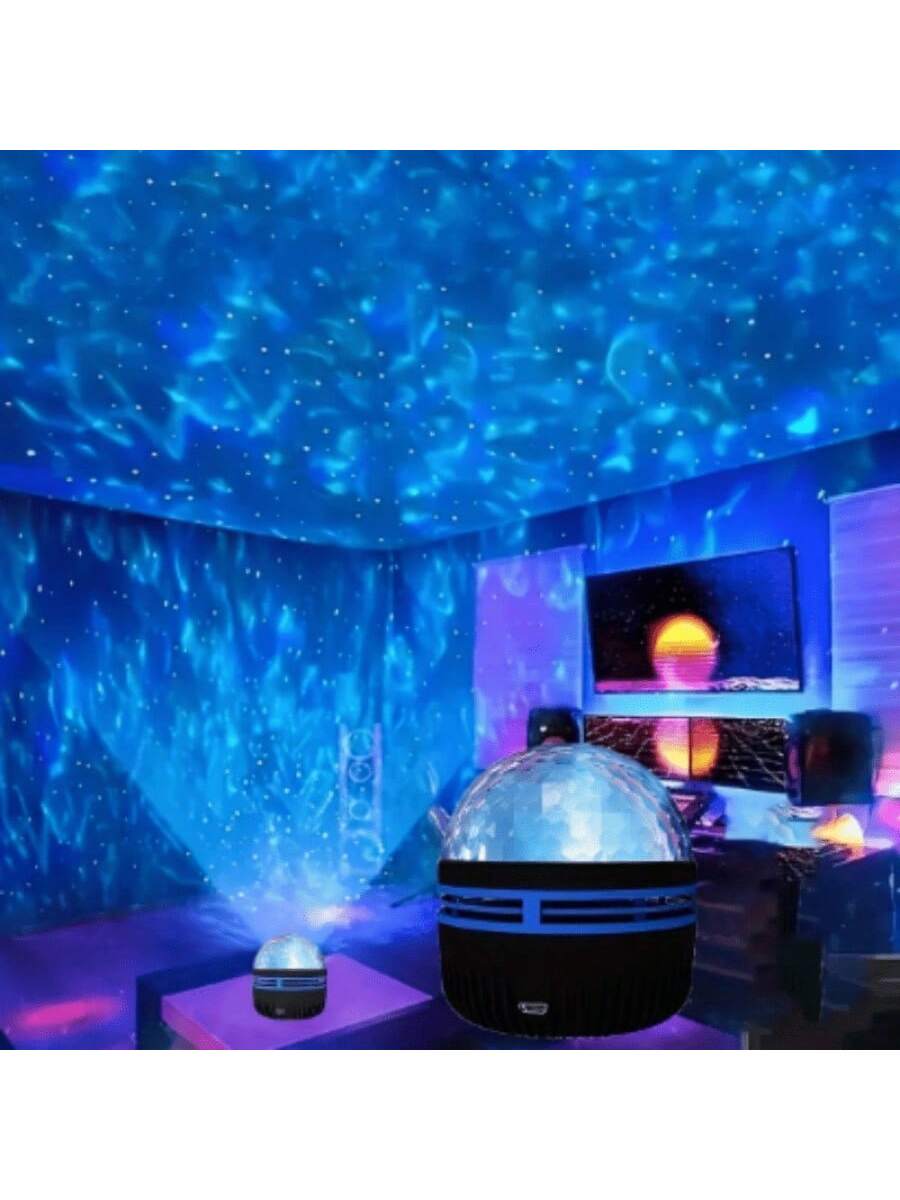 Proyector estelar versátil que combina efectos de estrellas y patrones de agua en movimiento. Conexión USB para alimentación portátil. Ideal para crear ambientes relajantes en dormitorios infantiles o terapias de relajación. Incluye múltiples opciones de proyección y brillo ajustable.