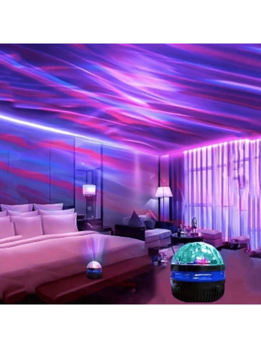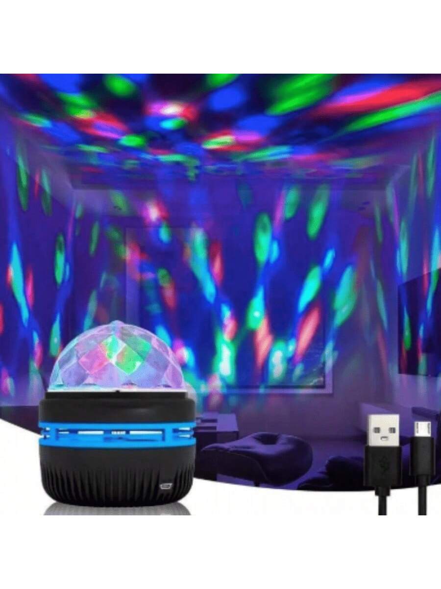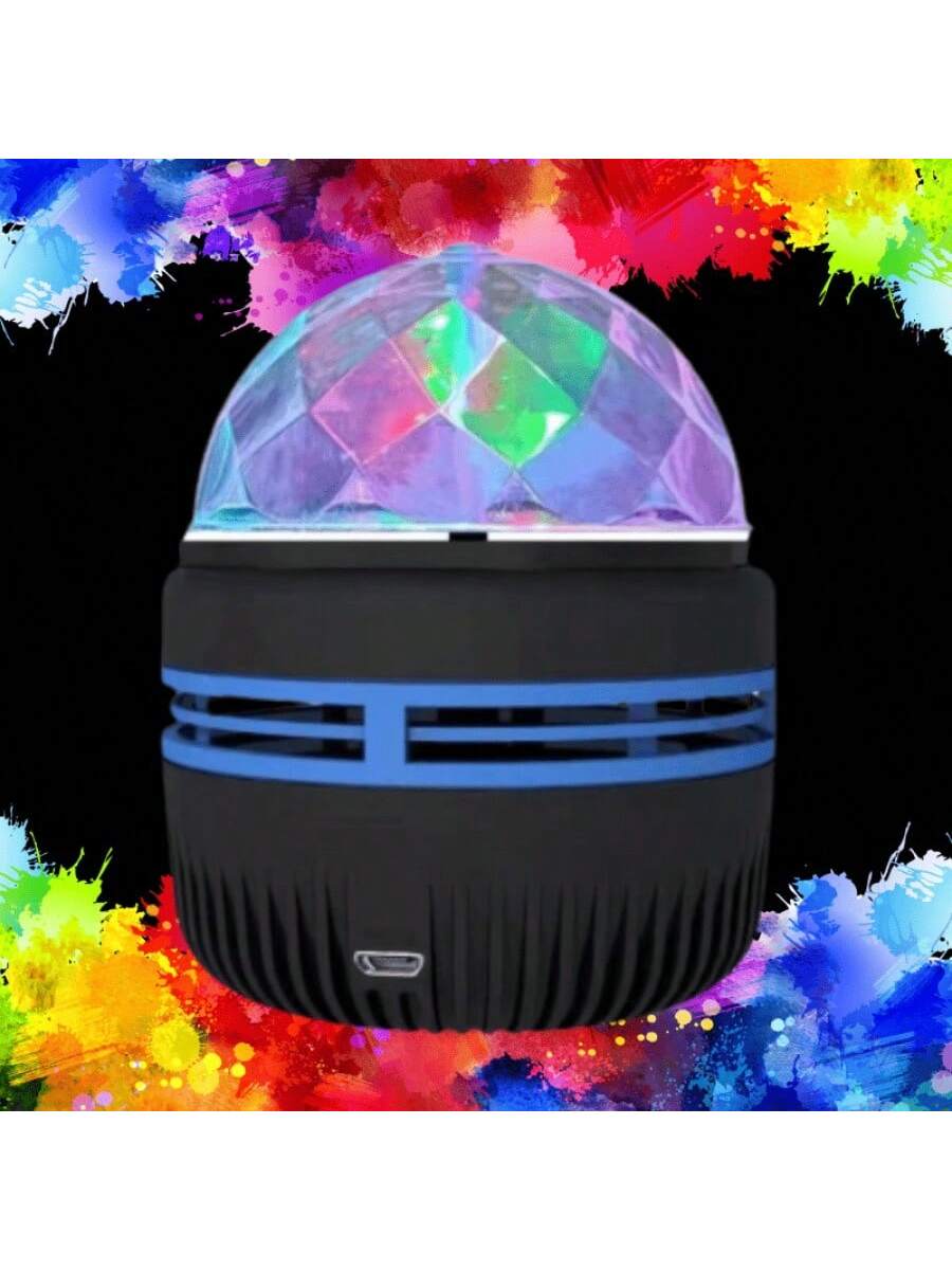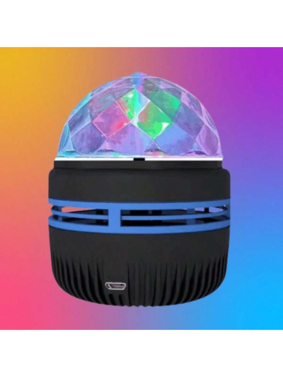 Lámpara proyector estilo cristal que dispersa patrones estelares en 360°. Base USB recargable con hasta 8 horas de autonomía. Efectos de luz rotativos y cambio de colores automático. Pieza decorativa que combina funcionalidad y diseño futurista para habitaciones modernas.