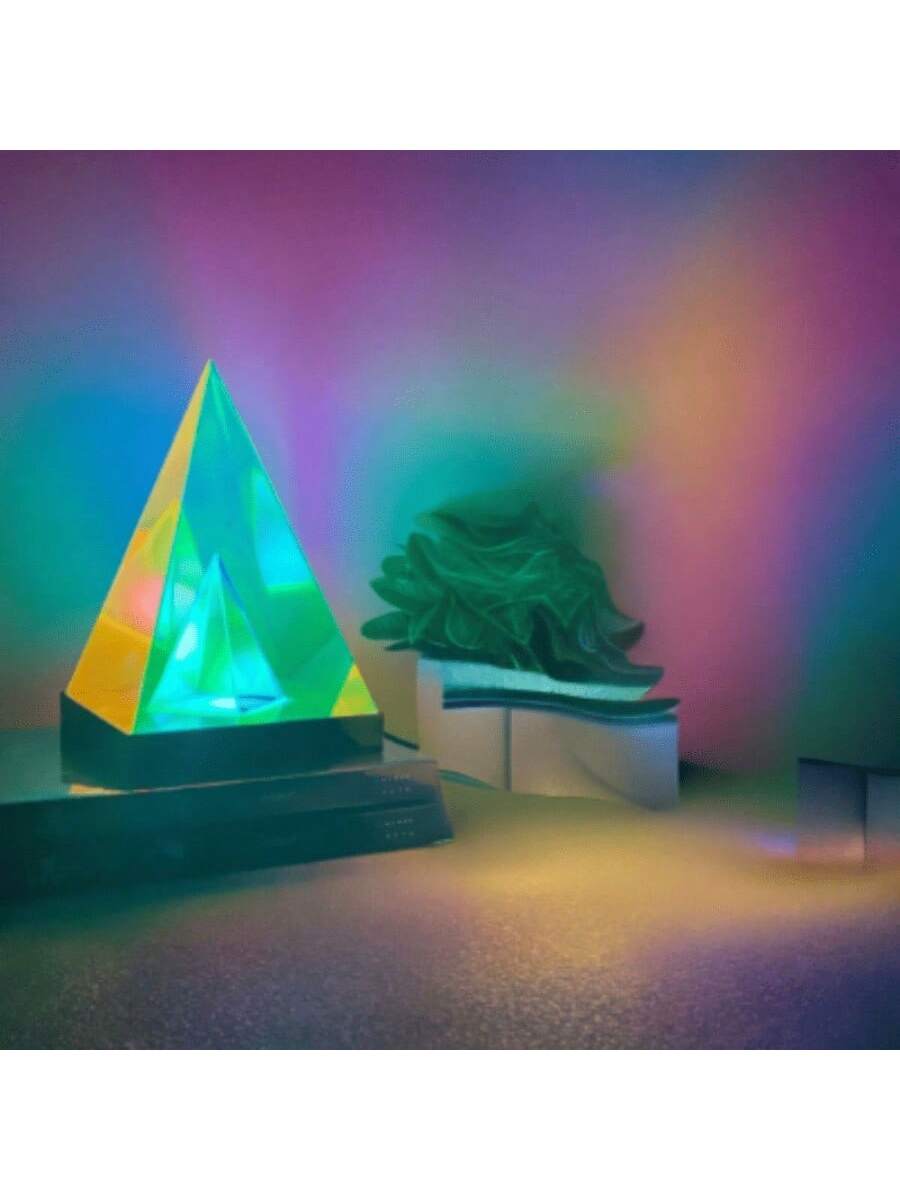 Luminaria USB triangular con triple opción de color y control de intensidad continuo. Ideal para conexión a powerbanks o puertos USB. Luz ambiental perfecta para dormitorios, oficinas o espacios reducidos. Materiales resistentes y superficie anticalórica.