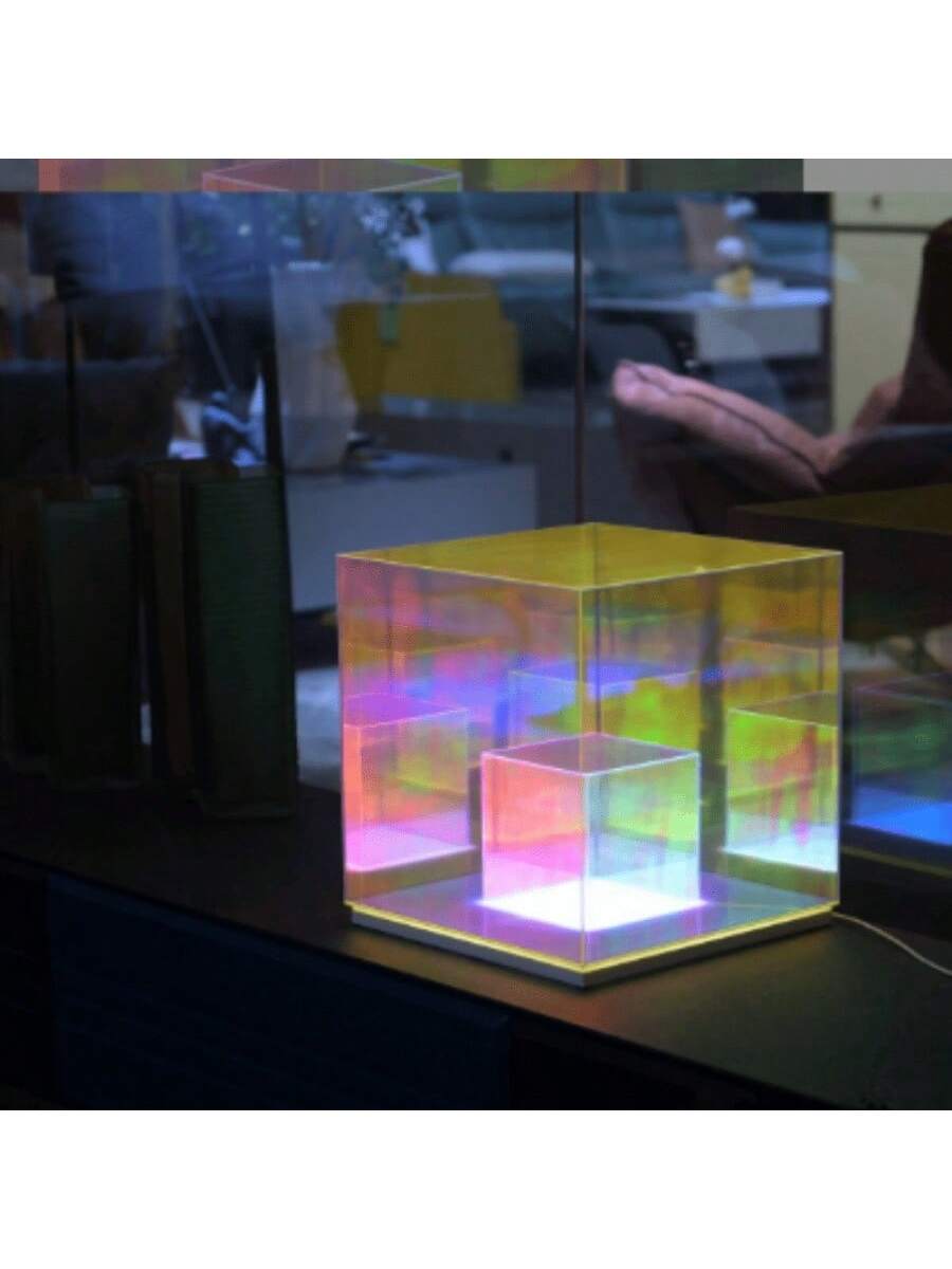 Versión premium con 16 colores RGB y mando a distancia incluido. Proyección cuadrada de ondas dinámicas con múltiples modos programables. Base plástica estable y conexión enchufable. Ideal para fiestas, meditación o como luz ambiental inteligente.