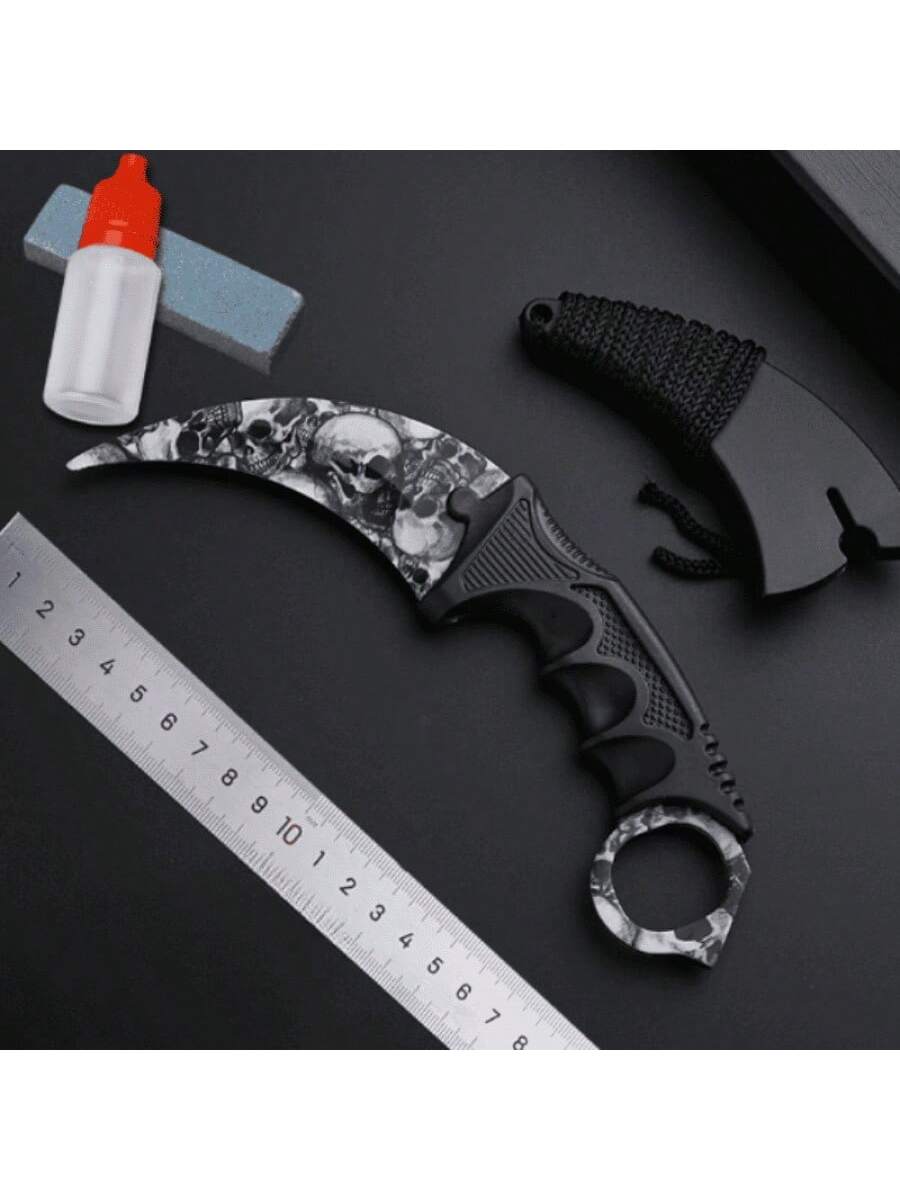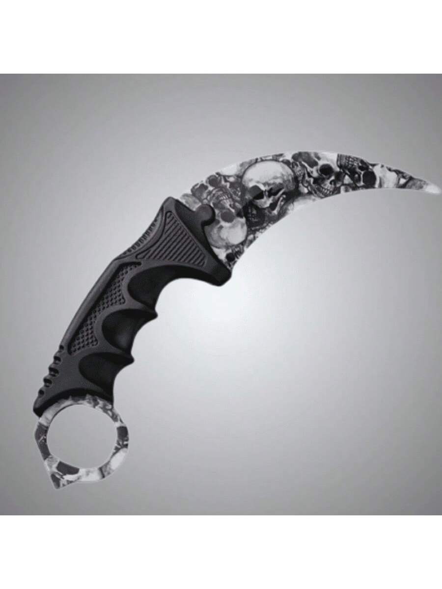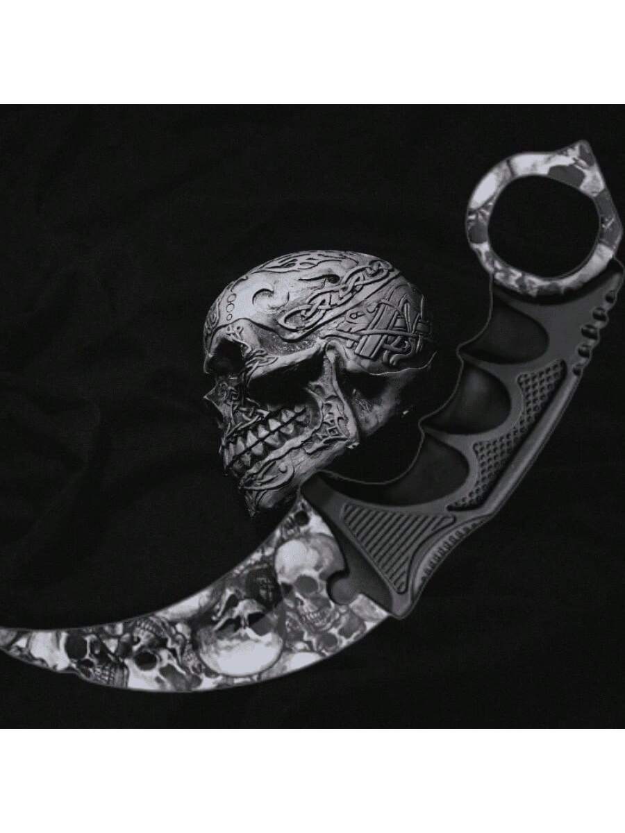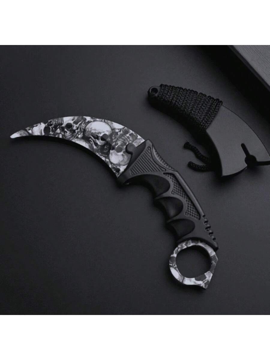 Cuchillo coleccionable con diseño de garra cimitarra y motivo fantasma. Longitud 25cm. Material ABS de alta densidad. Acabados metálicos realistas. Incluye funda protectora. Ideal para cosplay, LARP o decoración temática.