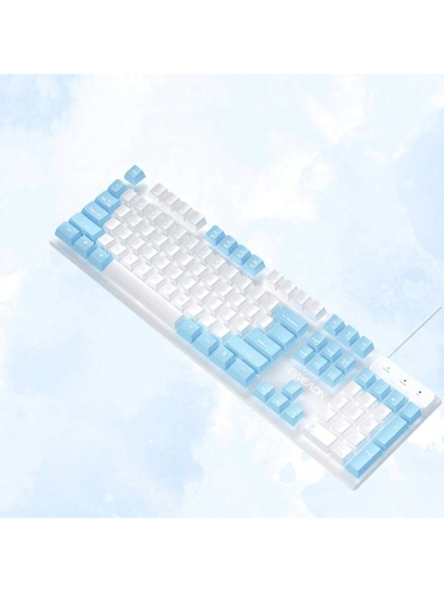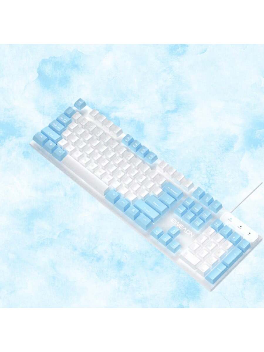 Teclado económico con tres opciones de retroiluminación (blanca fija, azul fija o blanca intermitente). Estructura resistente a derrames y teclas de perfil bajo. Compatible con Windows/Mac. Ideal para trabajos nocturnos o setups minimalistas. Incluye patas ajustables.