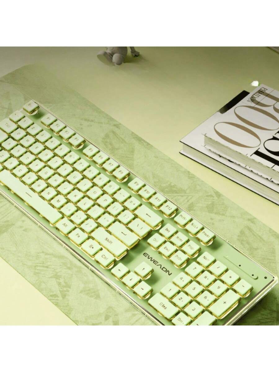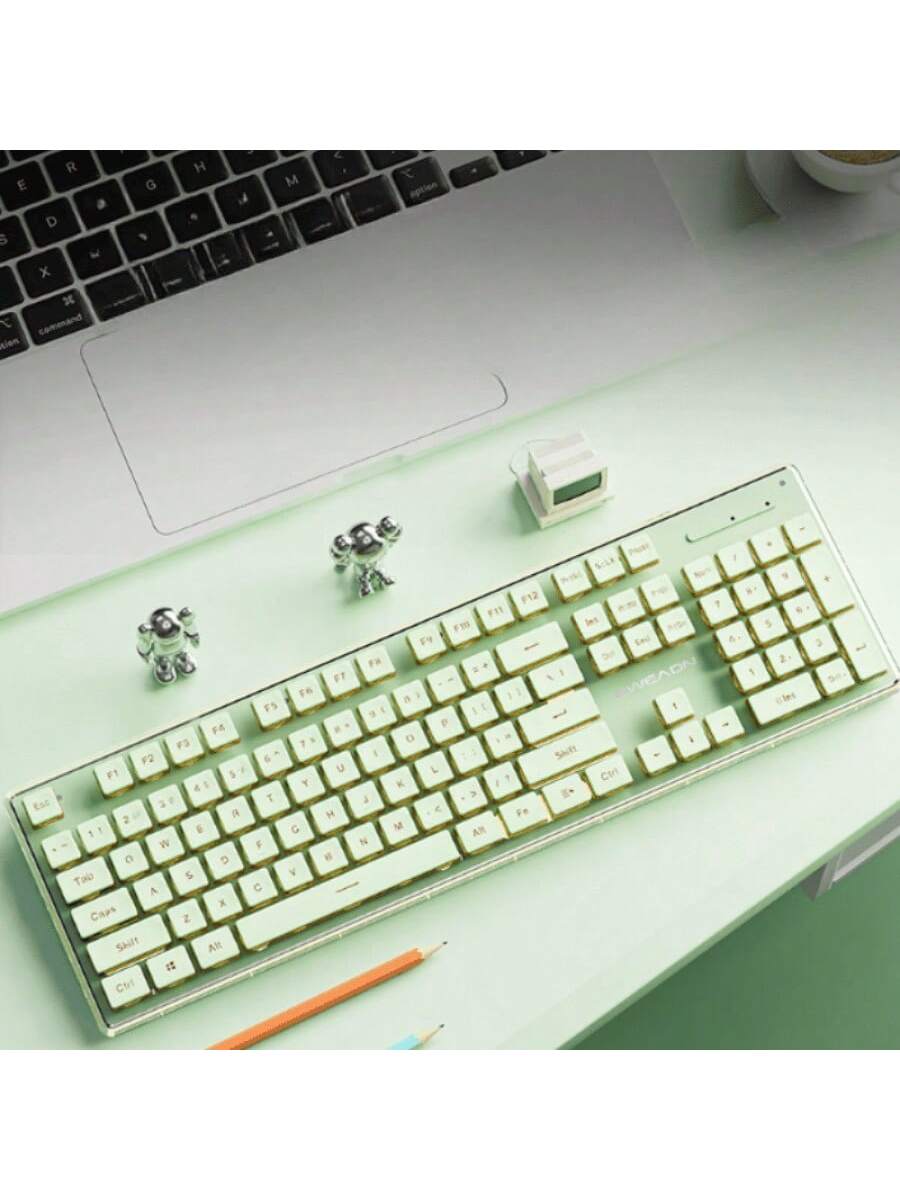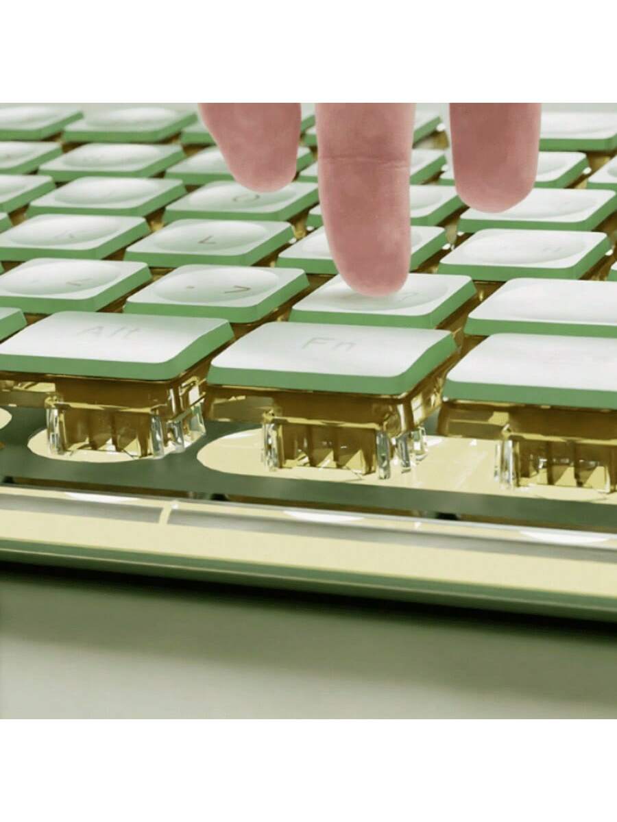 Teclado mecánico retro con combinación de luces verde y amarilla estilo arcade. Switches clicky para feedback auditivo. Estructura metálica reforzada. Teclas PBT resistentes al desgaste. Incluye cable trenzado desmontable. Para entusiastas del diseño retro-futurista.