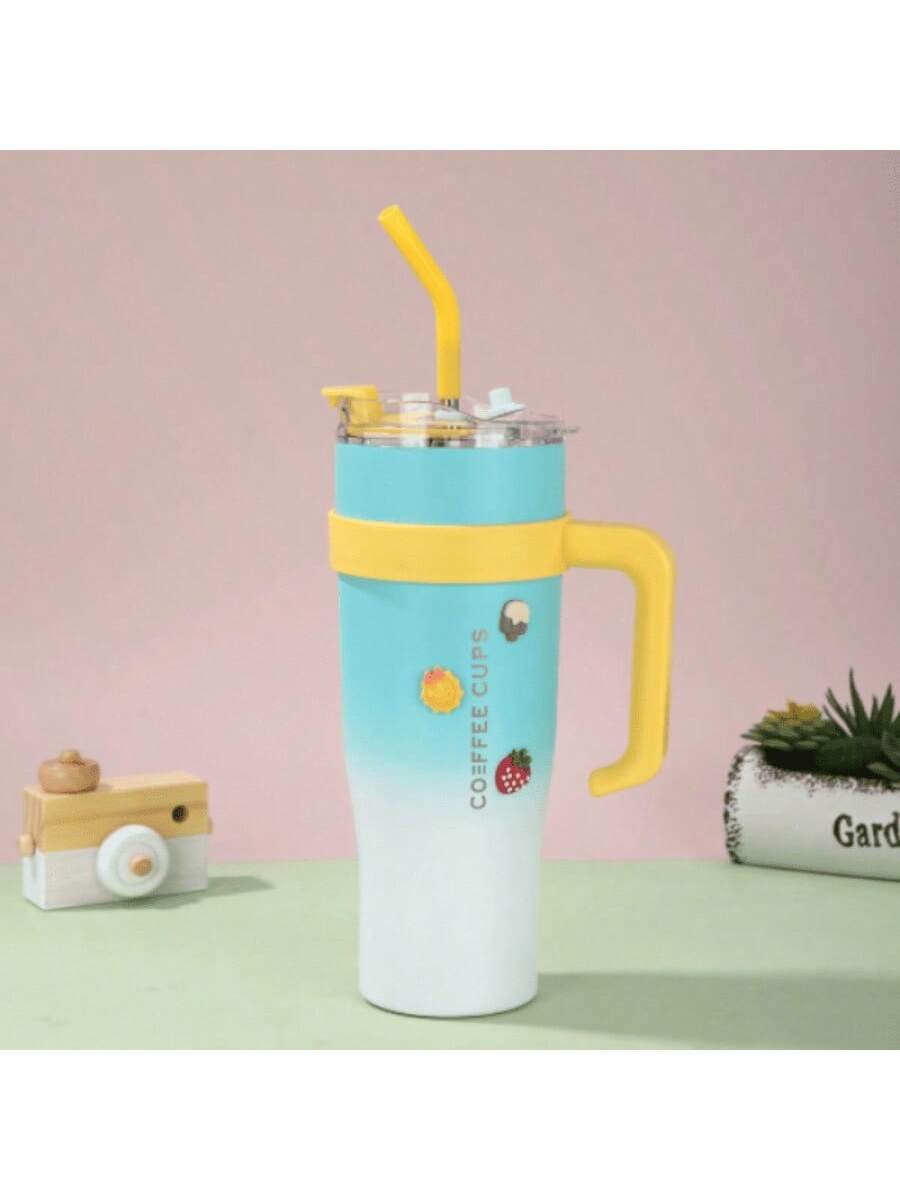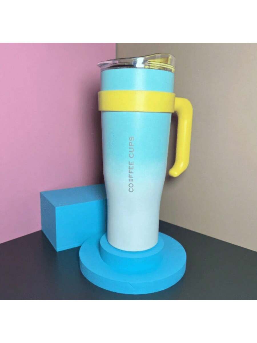 Práctico termo de 40 oz (1200 ml) en azul degradado vibrante. Doble pared de acero inoxidable para máxima termorregulación. Diseño ligero con asa integrada y cubierta mate anti-huellas. Acompaña tus días activos con bebidas a la temperatura ideal.