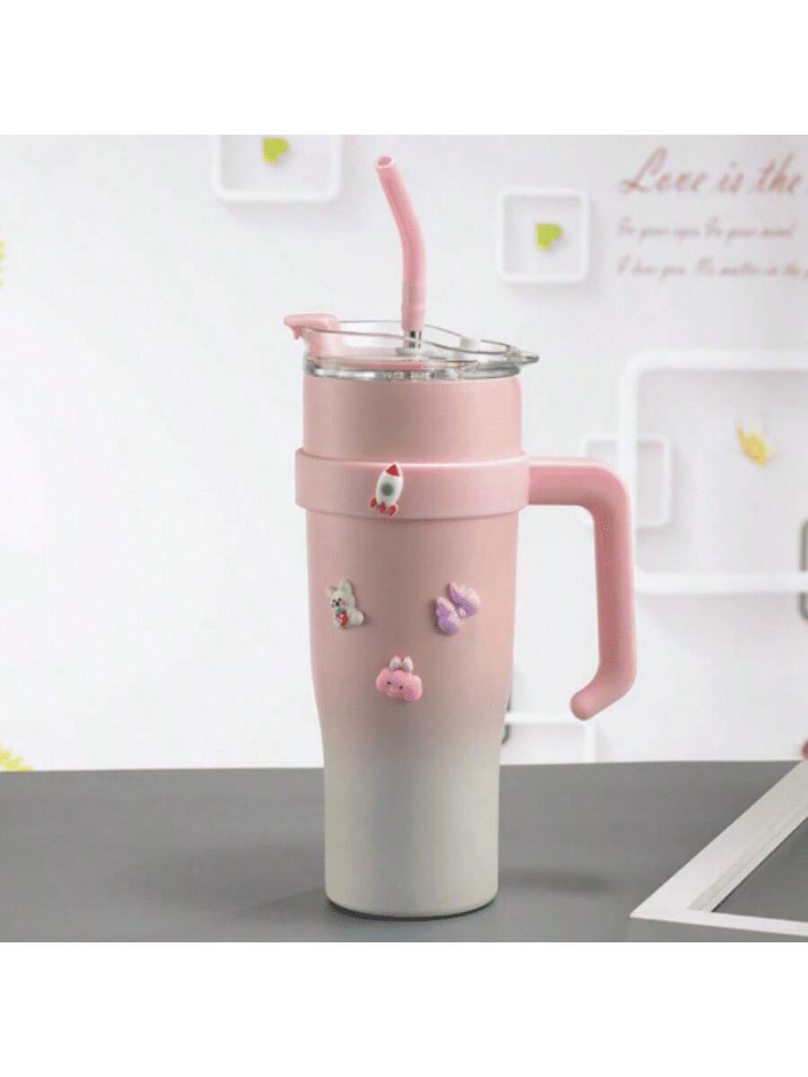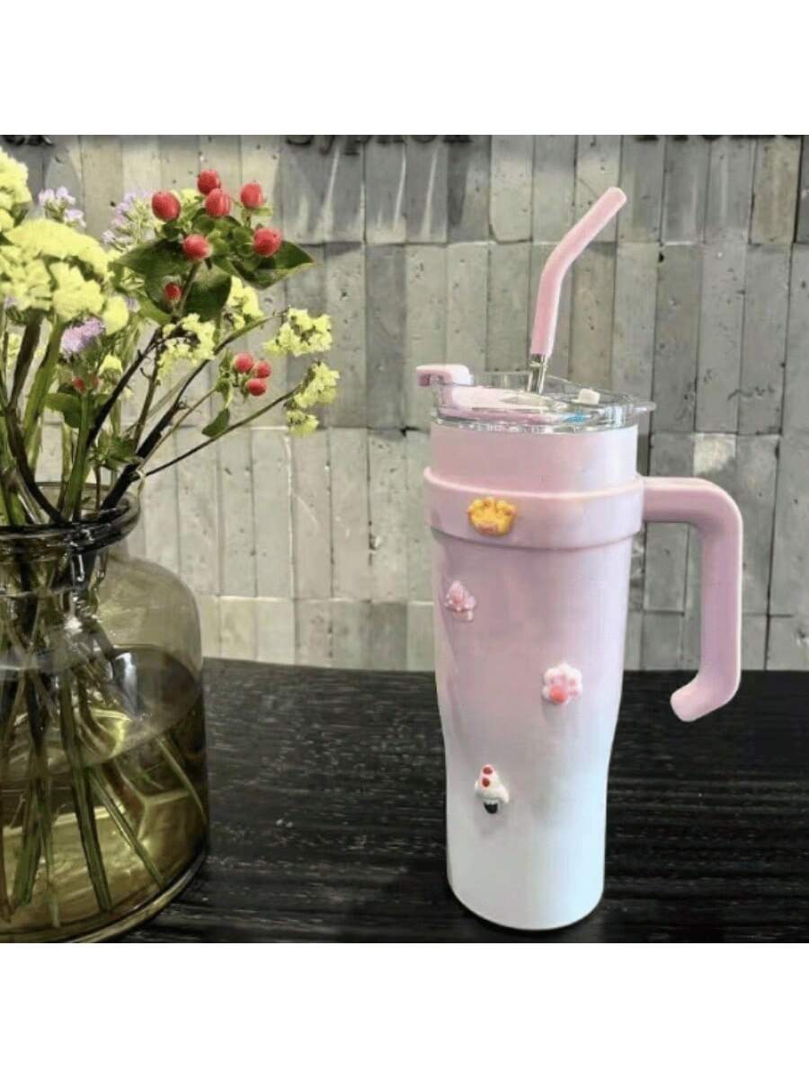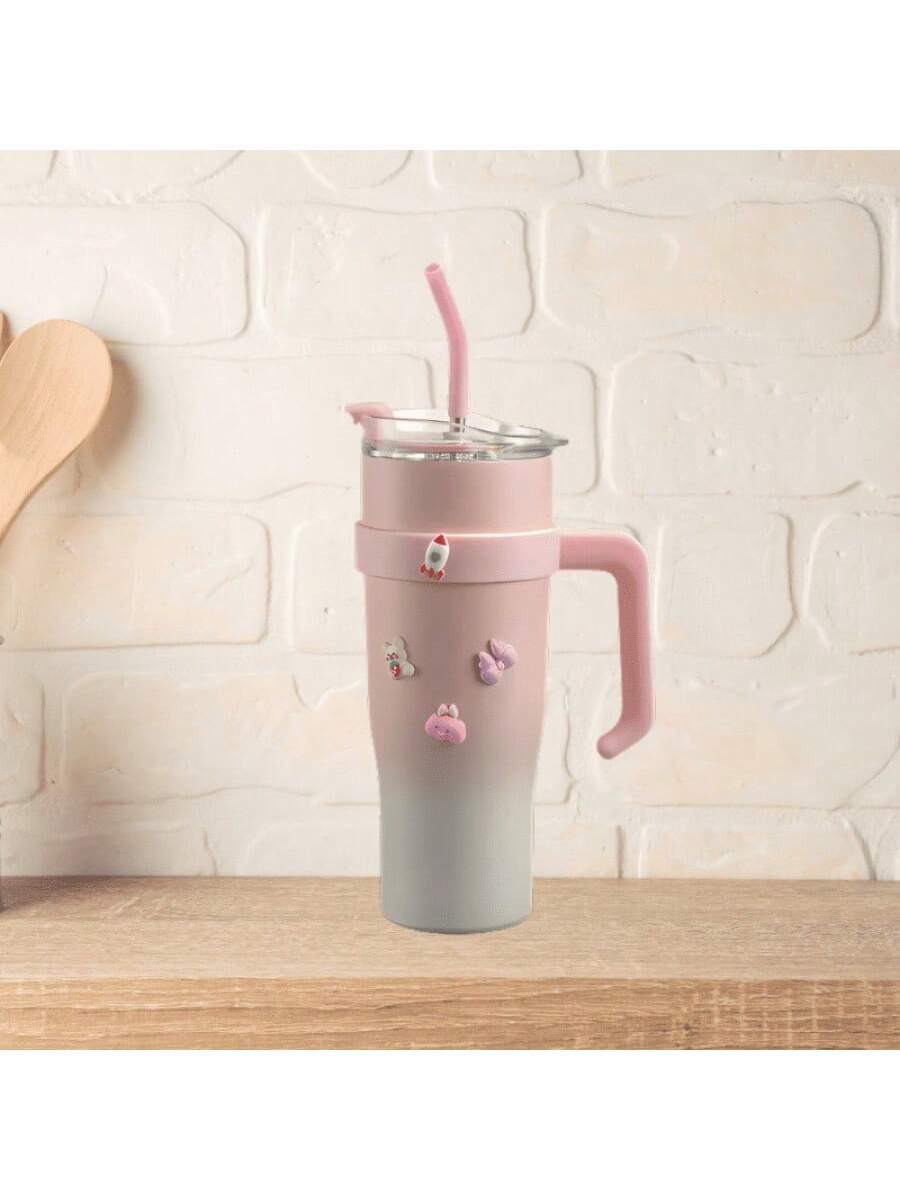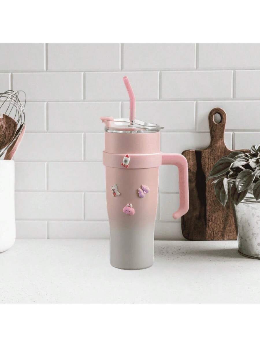 Encantador termo rosa de 1.2L (40 oz) con capacidad extra para hidratación prolongada. Mantiene la temperatura (frío/calor) por horas, tapa a prueba de derrames y diseño apto para lavavajillas. Ideal para gym, picnic o el día a día. ¡Combina funcionalidad y moda!