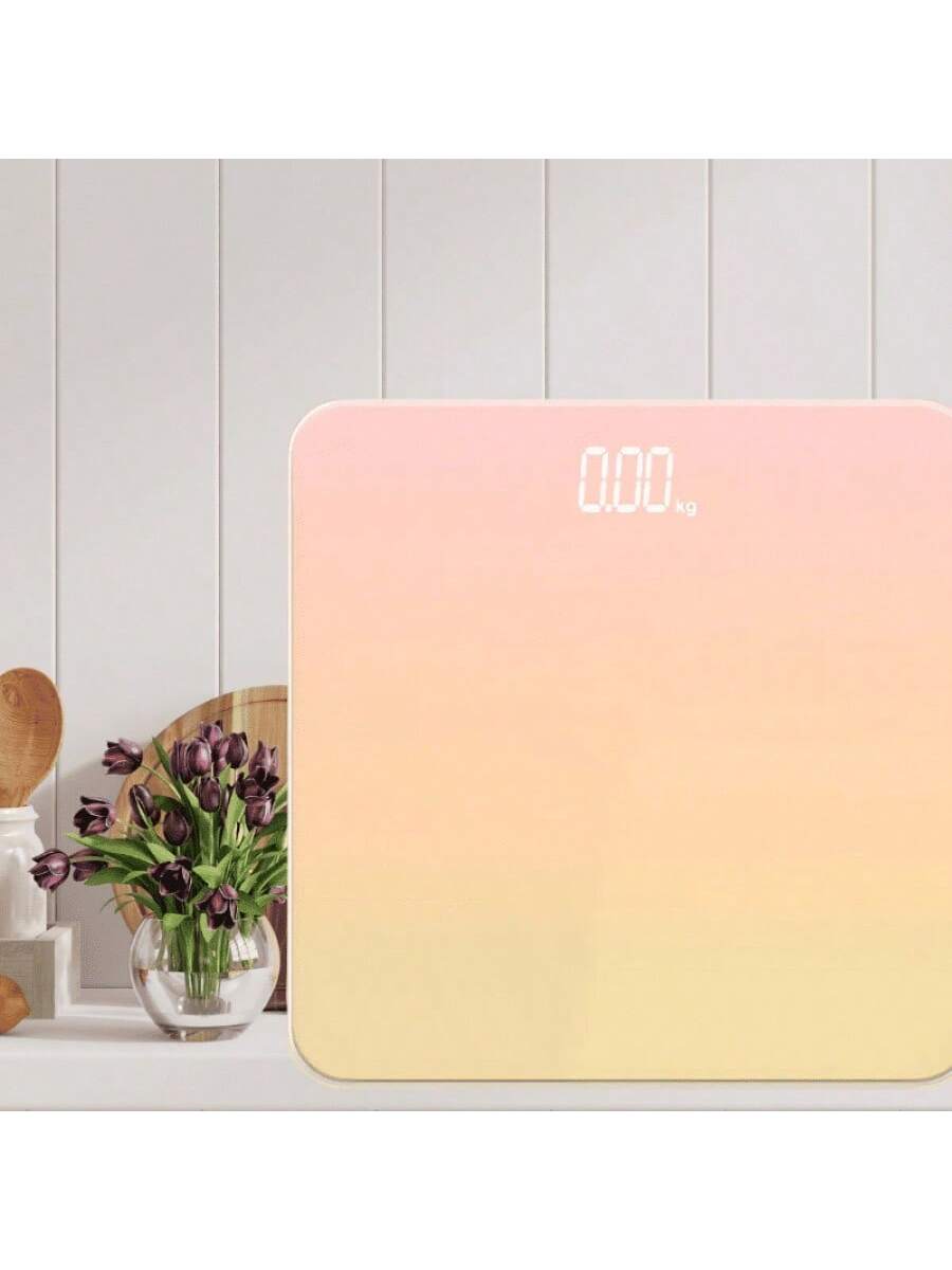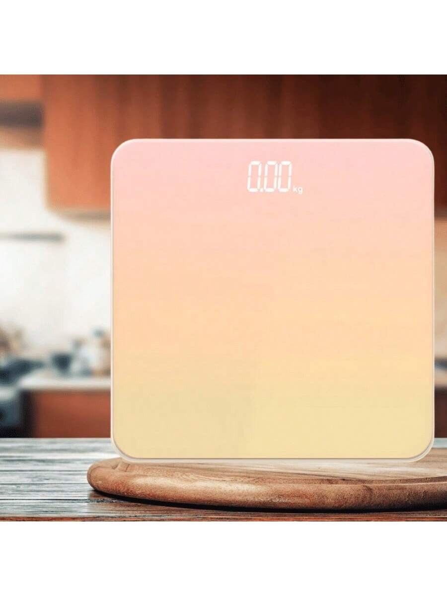 Elegante báscula con tono naranja degradado y luz LED. Incluye puerto USB para cargar dispositivos mientras controlas tu peso. Vidrio templado resistente, 4 sensores de alta precisión (±0.1 kg) y capacidad de 150 kg. ¡Funcionalidad y estilo en un solo dispositivo!