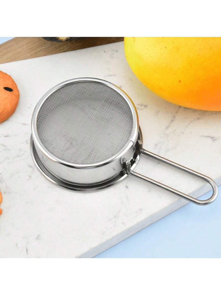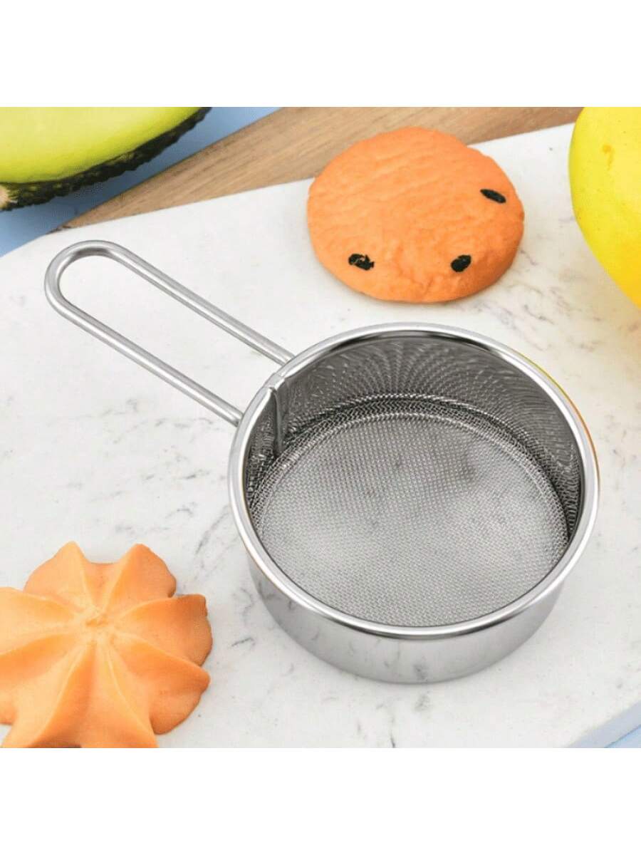 Tamiz profesional de malla fina en acero inoxidable grado alimenticio, ideal para espolvorear azúcar glass, harina o cacao con precisión. Estructura duradera con mango ergonómico y mecanismo de golpeo suave para un cribado uniforme. Perfecto para repostería fina, cafeterías y decoración de postres. Fácil de limpiar y resistente a la oxidación. Capacidad aproximada: 1 taza (250 ml).