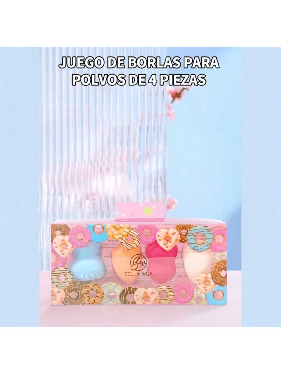Set que incluye tres borlas para polvos y un adorno de pulpo pequeño.