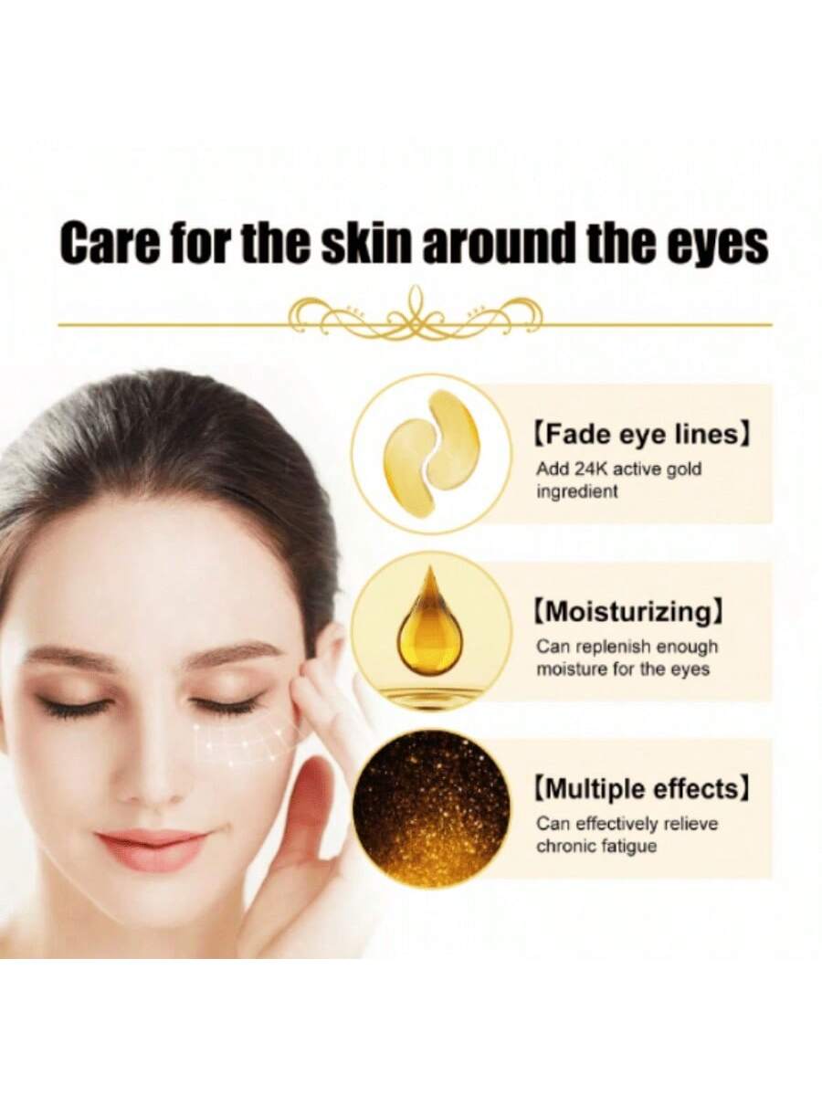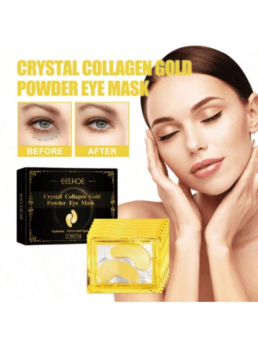 Parches para contorno de ojos infusionados con colágeno y partículas doradas. Reducen visiblemente bolsas y ojeras mientras hidratan intensamente la zona.