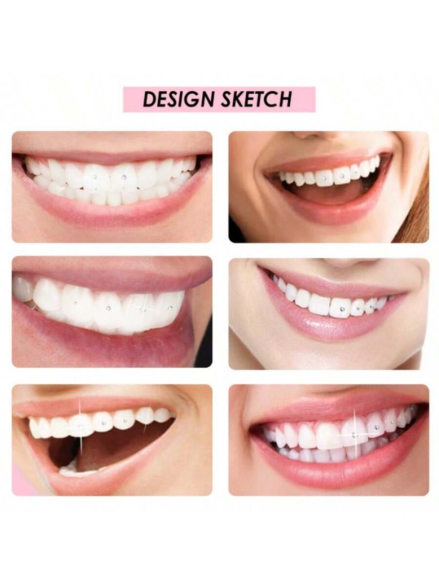 Adornos decorativos temporales para dientes, ideales para fiestas o eventos especiales. Fácil aplicación y remoción, sin dañar el esmalte dental.