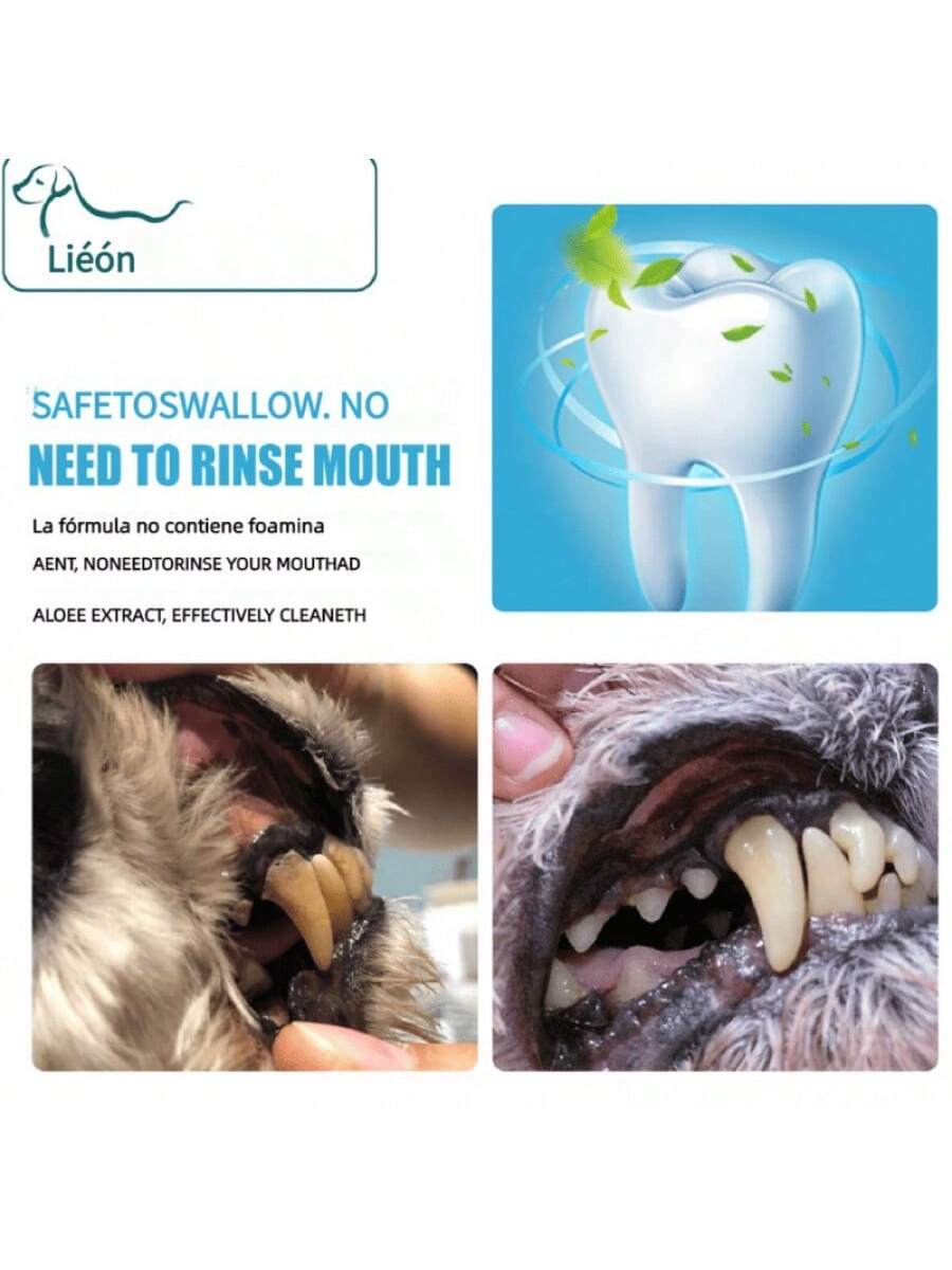 Pasta dental especializada formulada específicamente para perros y gatos, con sabores atractivos para mascotas que facilitan el cepillado. Su fórmula enzimática ayuda a descomponer la placa bacteriana, previene la formación de sarro y refresca el aliento de manera natural. Segura para ingestión, no contiene flúor ni otros ingredientes dañinos. El uso regular ayuda a mantener encías saludables y dientes limpios, previniendo problemas dentales comunes en mascotas. Incluye instrucciones para una correcta introducción al cepillado dental.