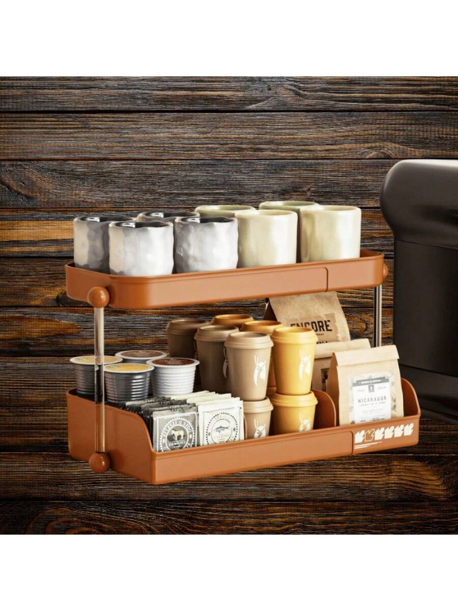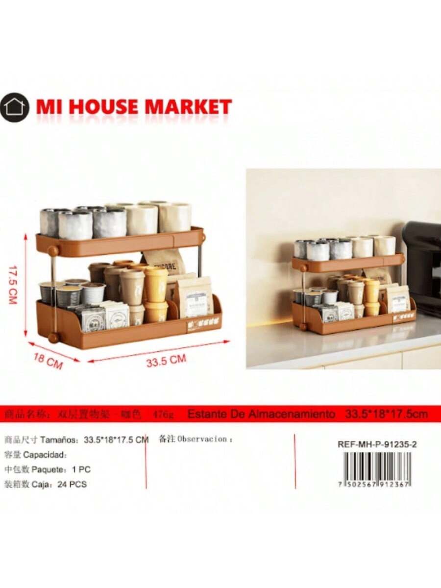 Estante funcional de dos niveles en color café, ideal para organizar espacios con un estilo cálido y acogedor. Perfecto para almacenar libros, plantas pequeñas o objetos decorativos en cualquier estancia. Construcción robusta y diseño compacto.