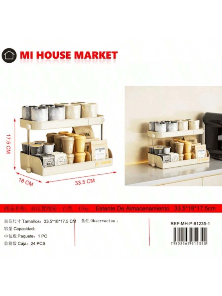 Estante de dos niveles en color blanco, diseño minimalista que se adapta a cualquier decoración. Excelente para crear espacio adicional de almacenamiento en baños, cocinas o escritorios. Superficie fácil de limpiar y mantener.