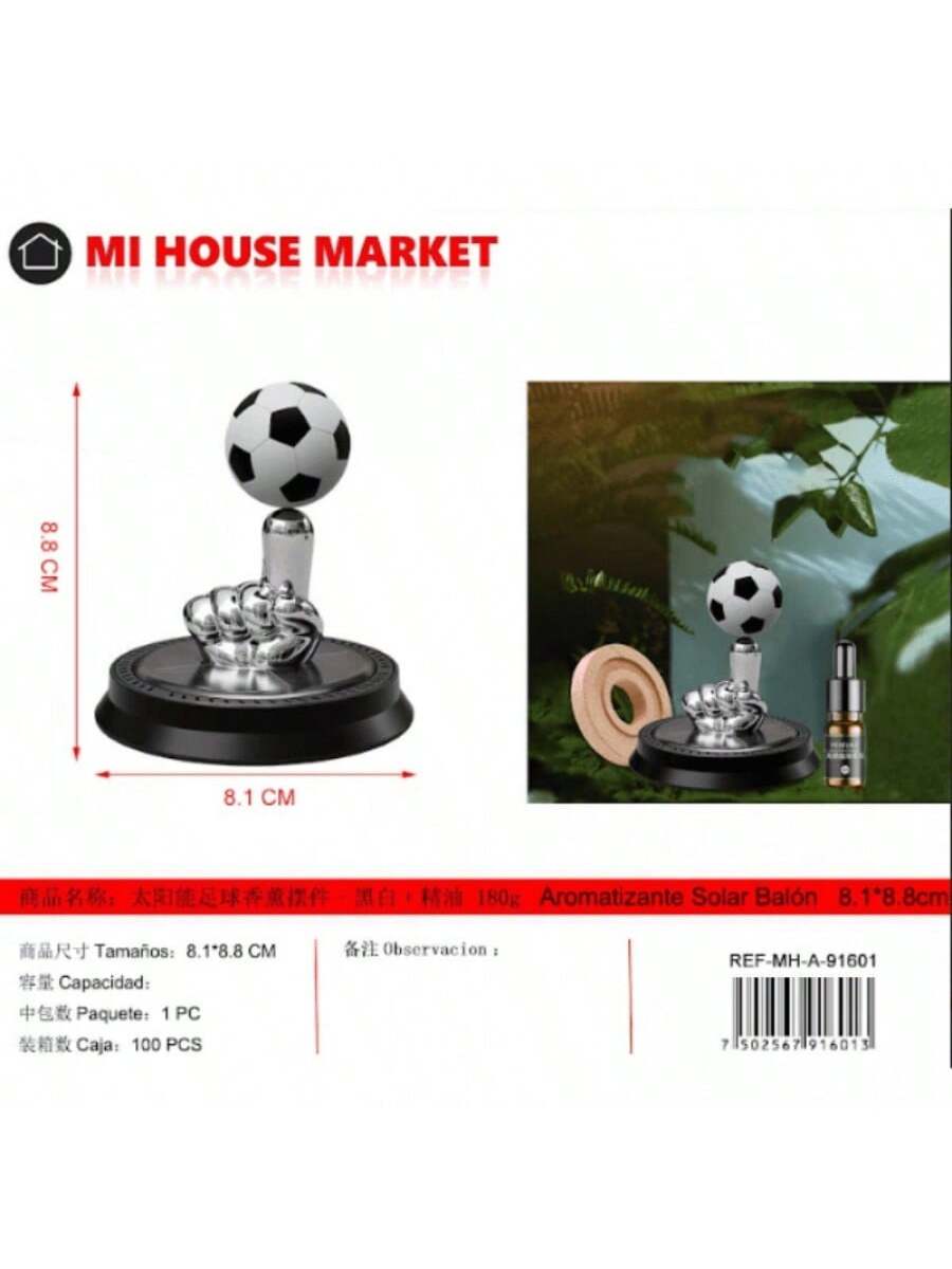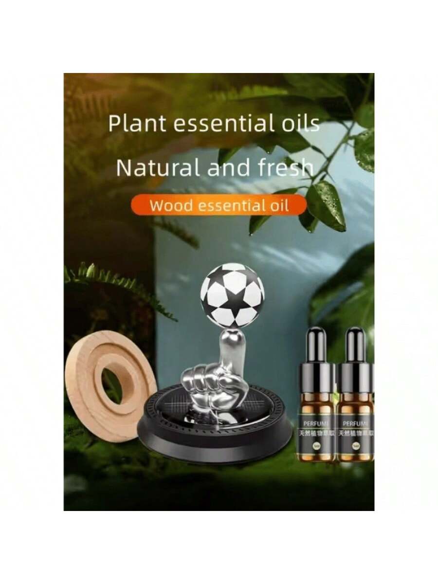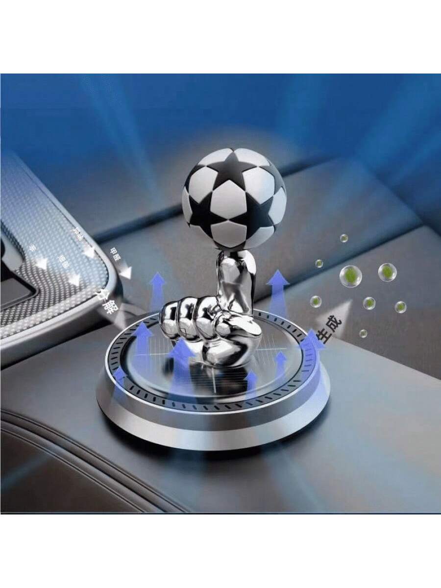Original adorno para coche con diseño de balón de fútbol en blanco y negro. Gira con energía solar y difunde suave aromaterapia con aceites esenciales. Decora tu vehículo mientras mantiene un ambiente fresco y agradable.