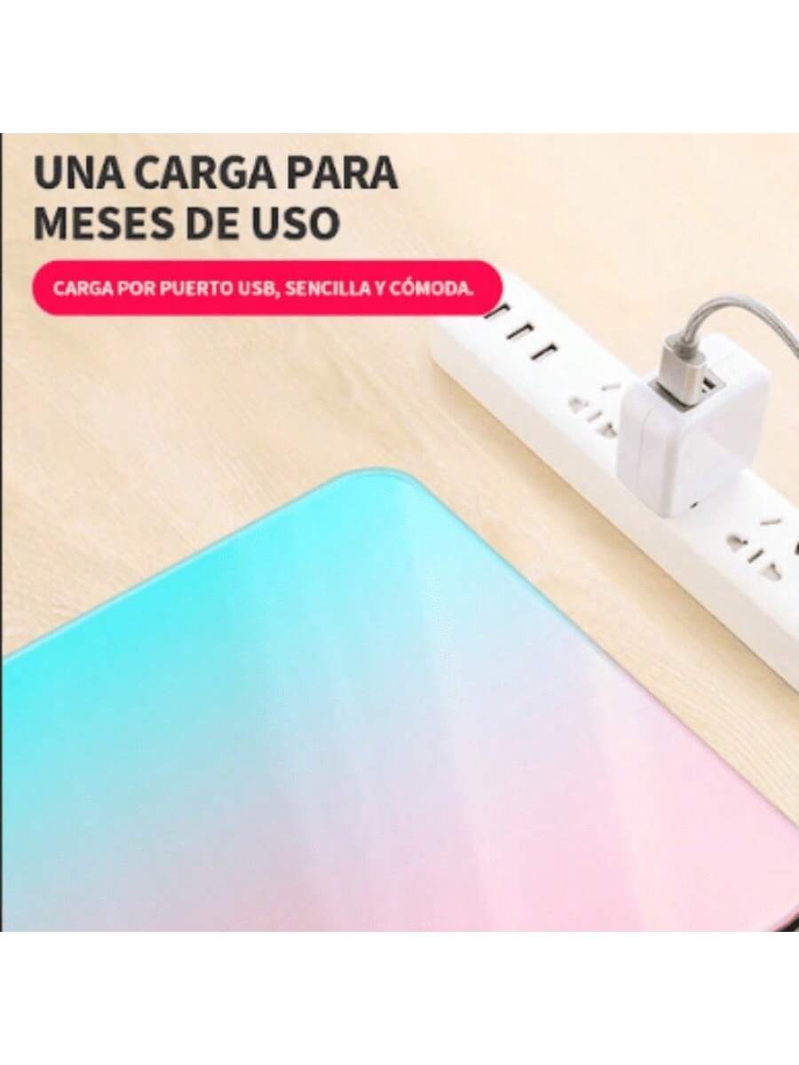 Luz LED con carga USB en tono rosa degradado, ideal para crear ambientes acogedores. Perfecta para decoración nocturna o como luz auxiliar. Conector USB para fácil recarga.