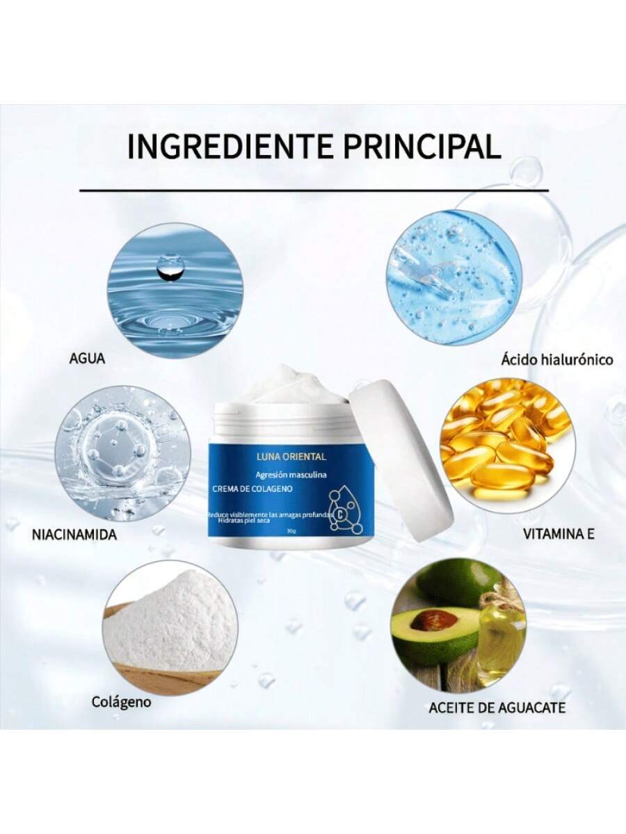 Crema facial específica para hombres enriquecida con colágeno que ayuda a reducir la apariencia de arrugas. Textura no grasa de rápida absorción.