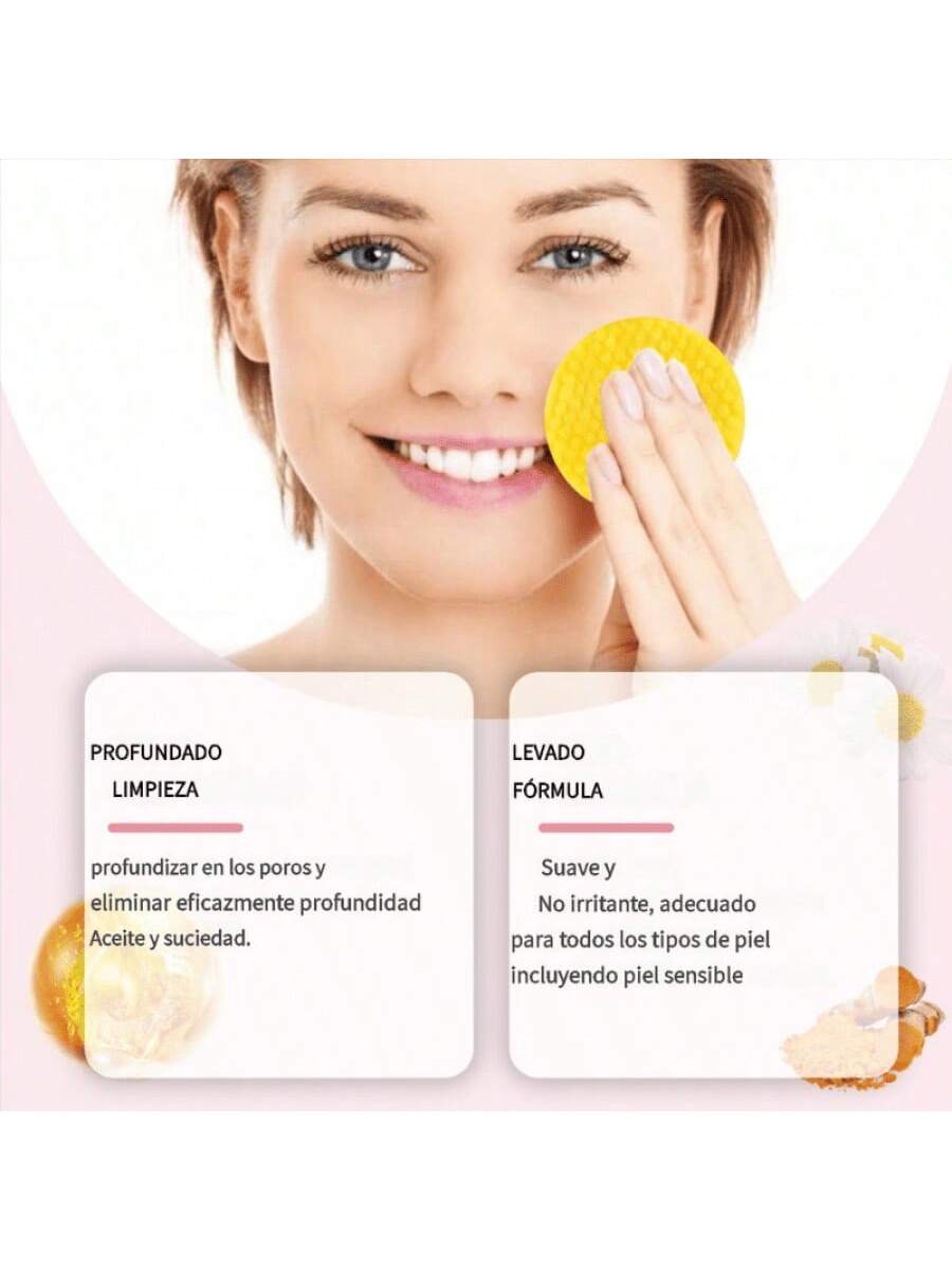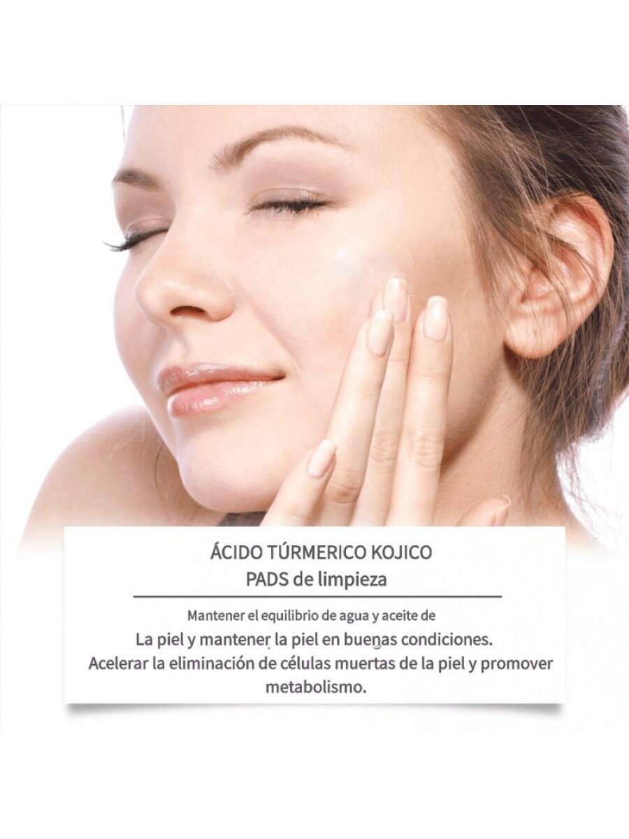 Discos de limpieza facial impregnados con cúrcuma y ácido kójico. Ayudan a unificar el tono de la piel y reducir impurezas.