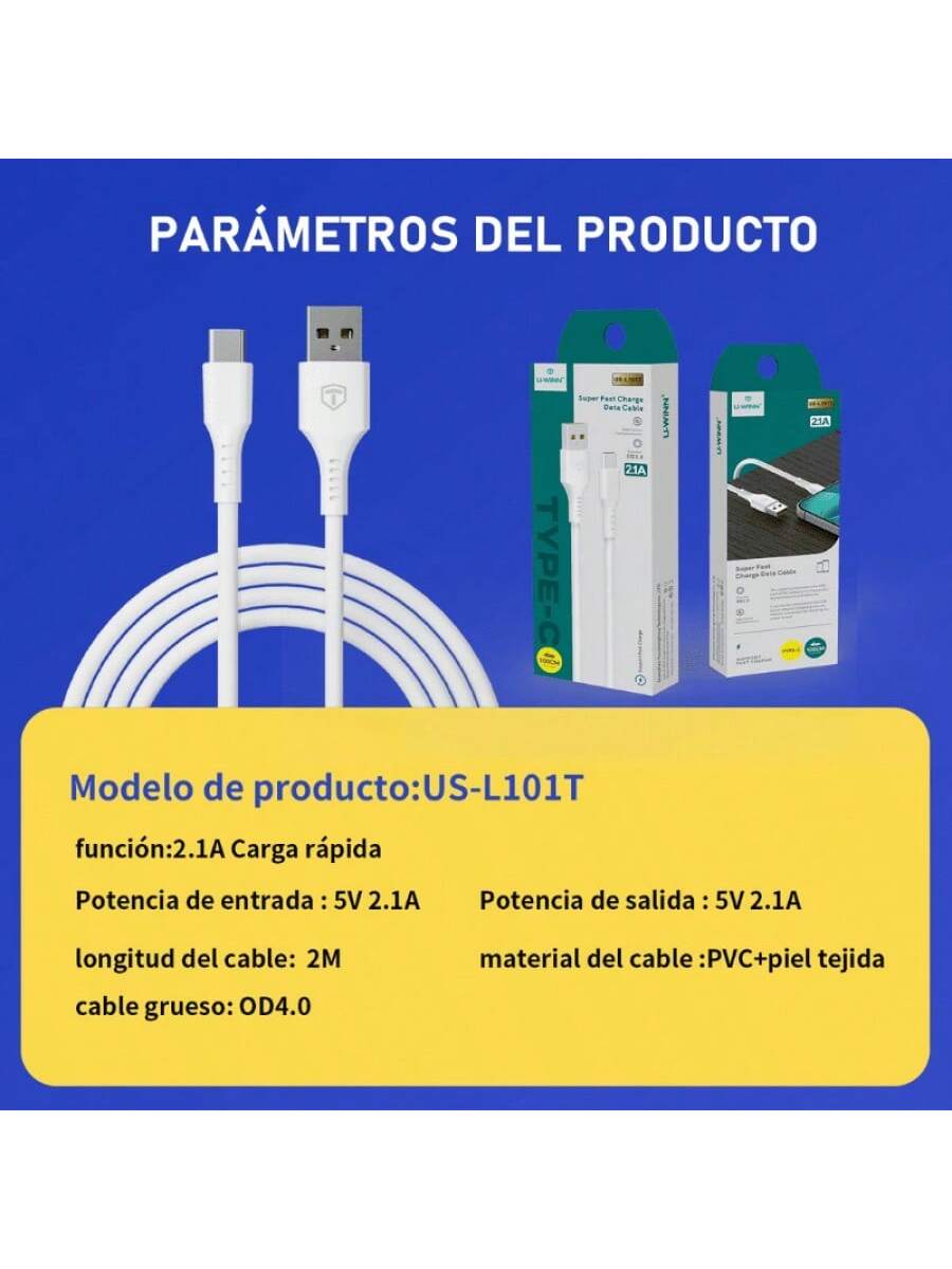 Cable de tipo USB to Tipo C con capacidad para una potencia de carga de 2.1A. Incluye 4 hilos internos que aseguran una transferencia de datos de 480 Mbps. Fabricado en PVC y con 1 metro de largo, es un accesorio moderno y útil.