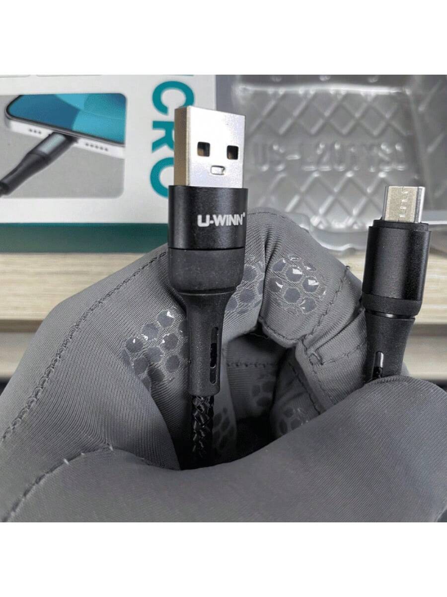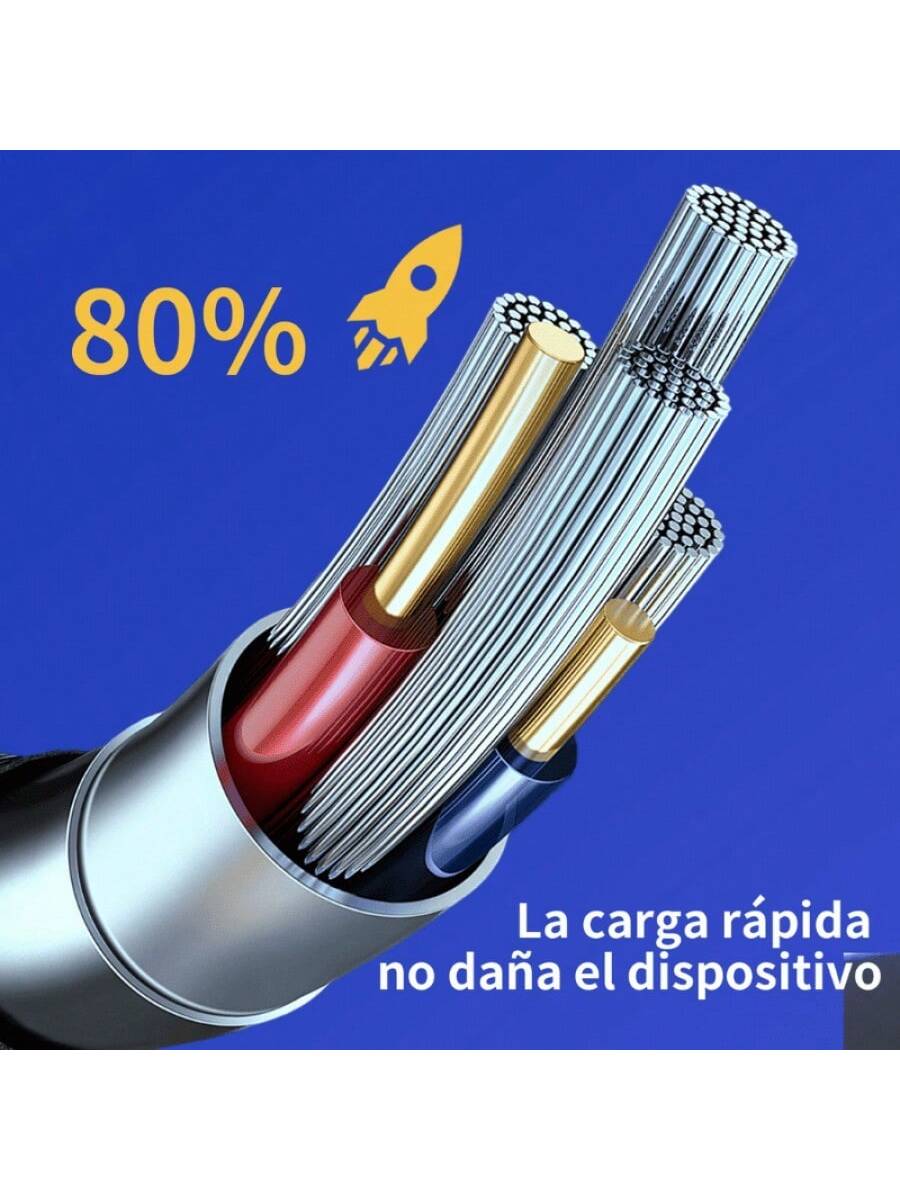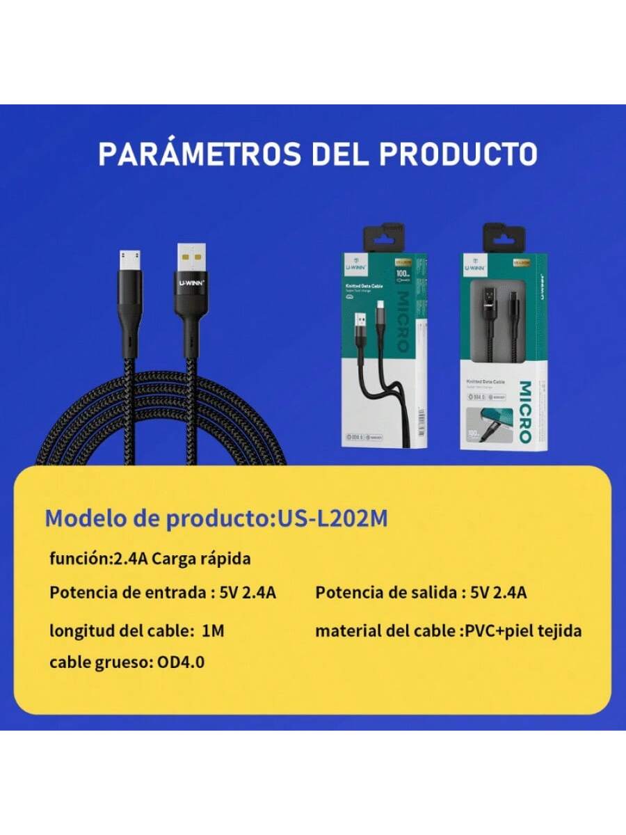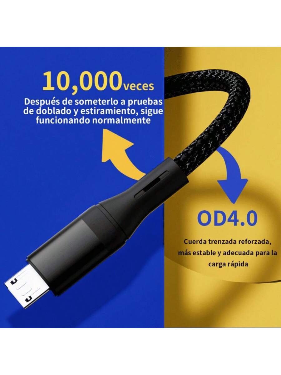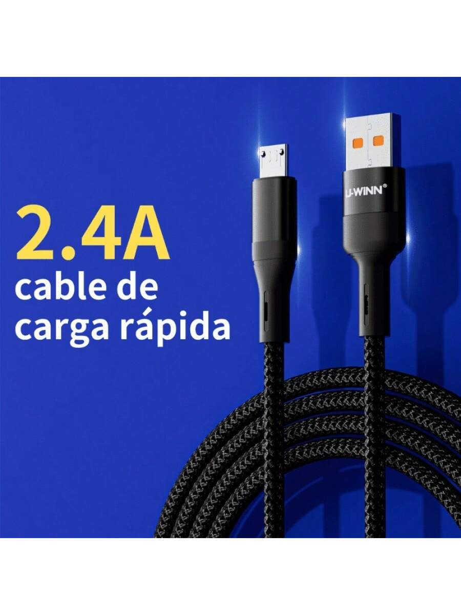 Cable Micro USB con capacidad de carga de 2.4A. Sus 4 hilos internos permiten una transferencia de datos de 480 Mbps. Con una longitud de 1 metro, su material de PVC y Nailon Trenzado lo hace resistente al uso constante.