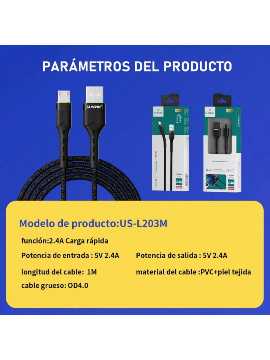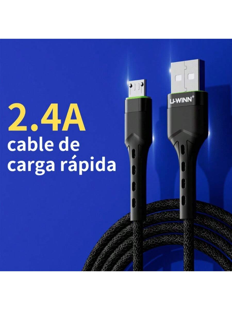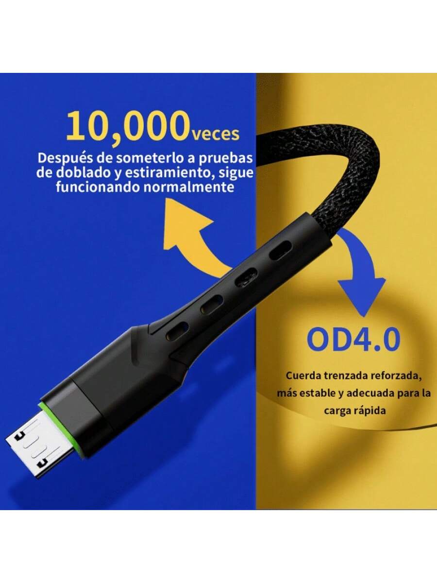 Cable tipo Micro USB con una potencia de carga de 2.4A. Incluye 4 núcleos internos que facilitan transferencias de 480 Mbps. Fabricado en PVC y Nailon Trenzado, su longitud de 1 metro es ideal para un uso frecuente y seguro.