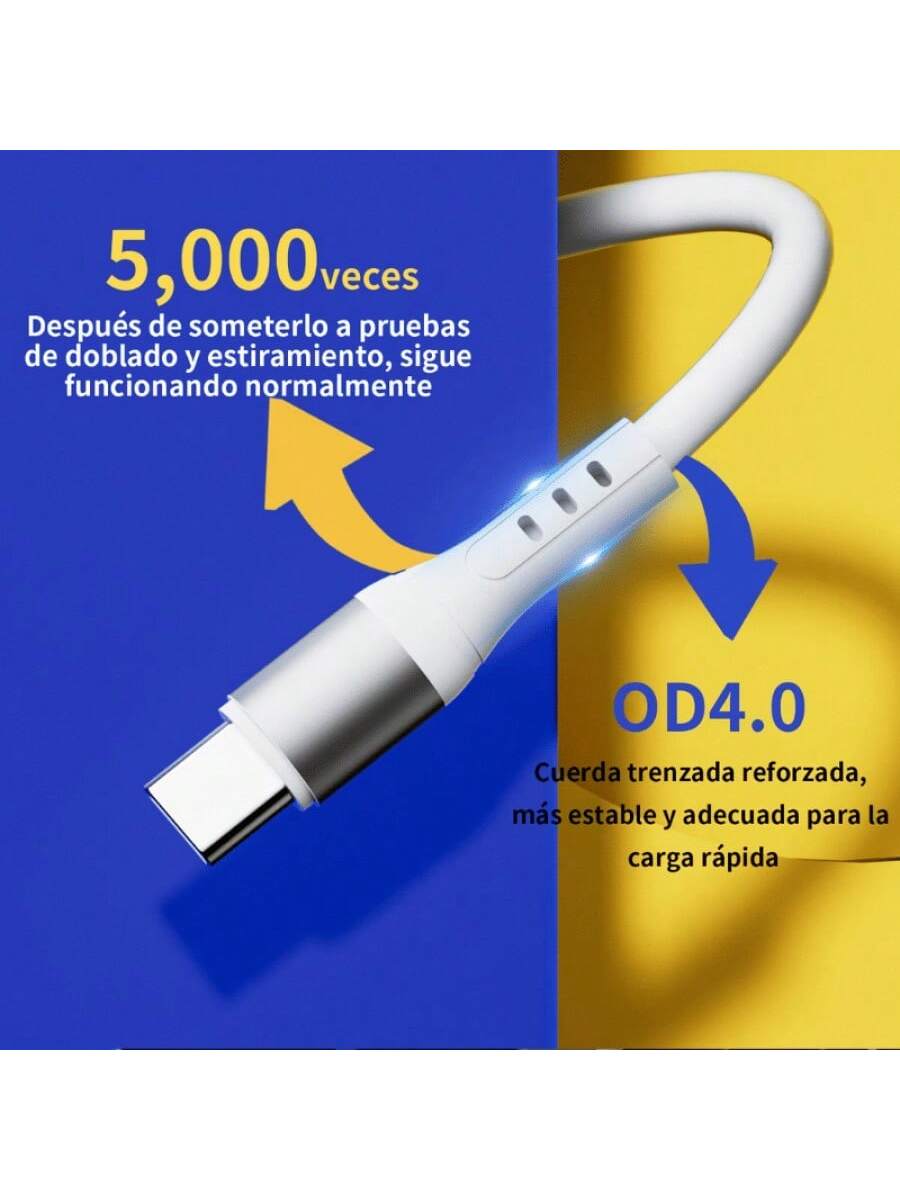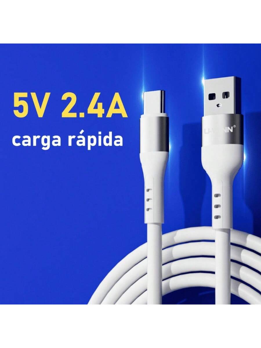 Cable USB to Tipo C en color blanco, con potencia de carga de 2.4A. Integra 4 hilos internos para transferencias de datos de 480 Mbps. De 1 metro de largo y fabricado en PVC, es ideal para dispositivos actuales.
