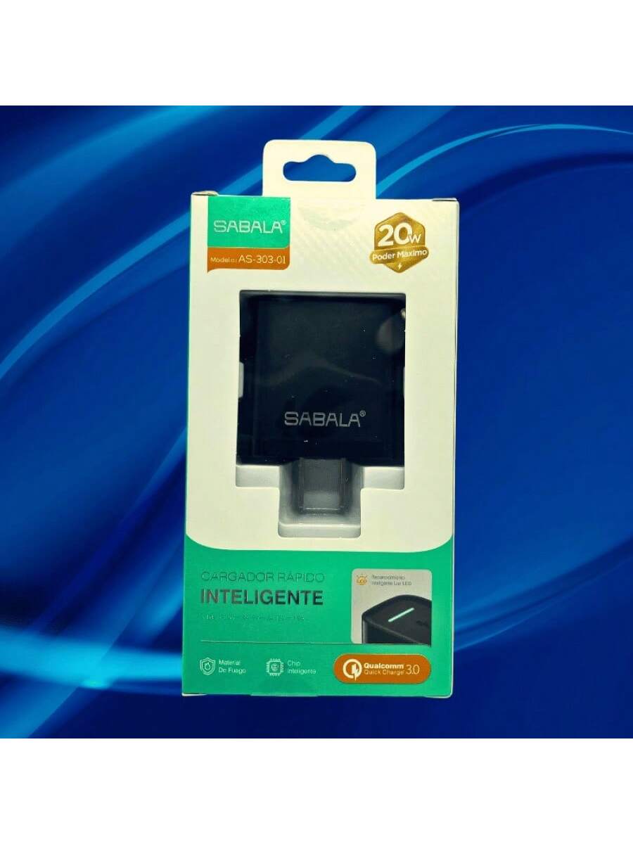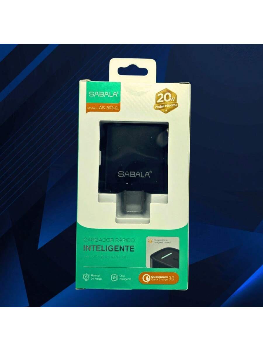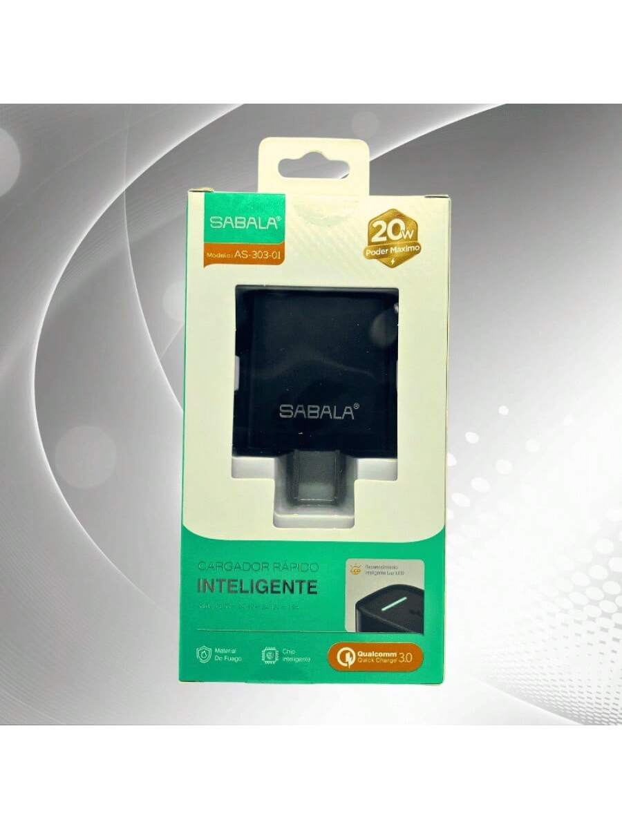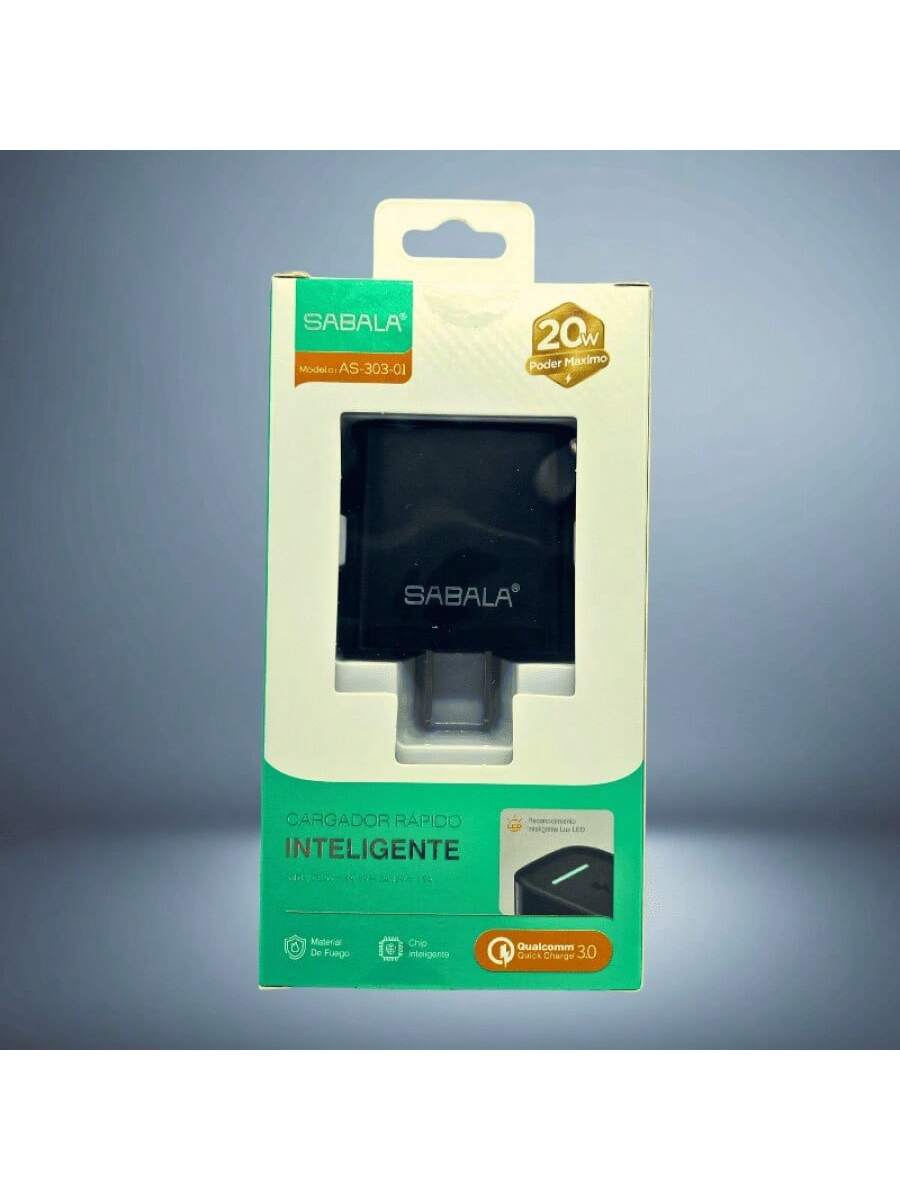 Cabezal de carga de 20W en color negro, diseñado para una carga más rápida y eficiente. Compatible con diversos dispositivos, proporciona un rendimiento mejorado para necesidades de energía más exigentes.