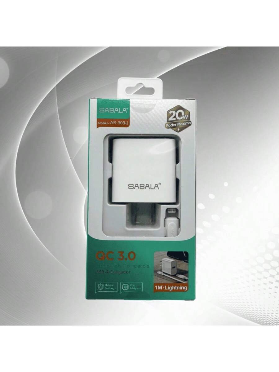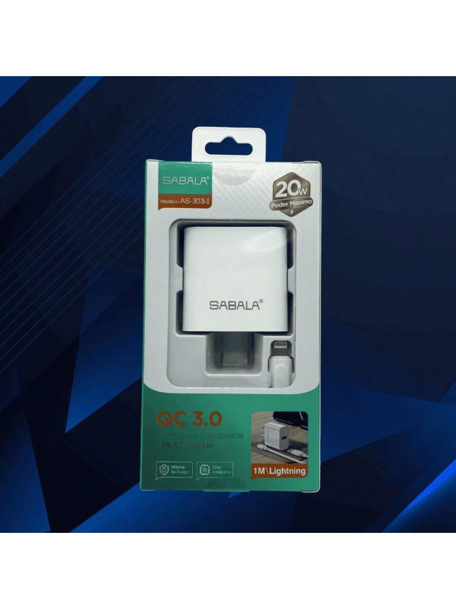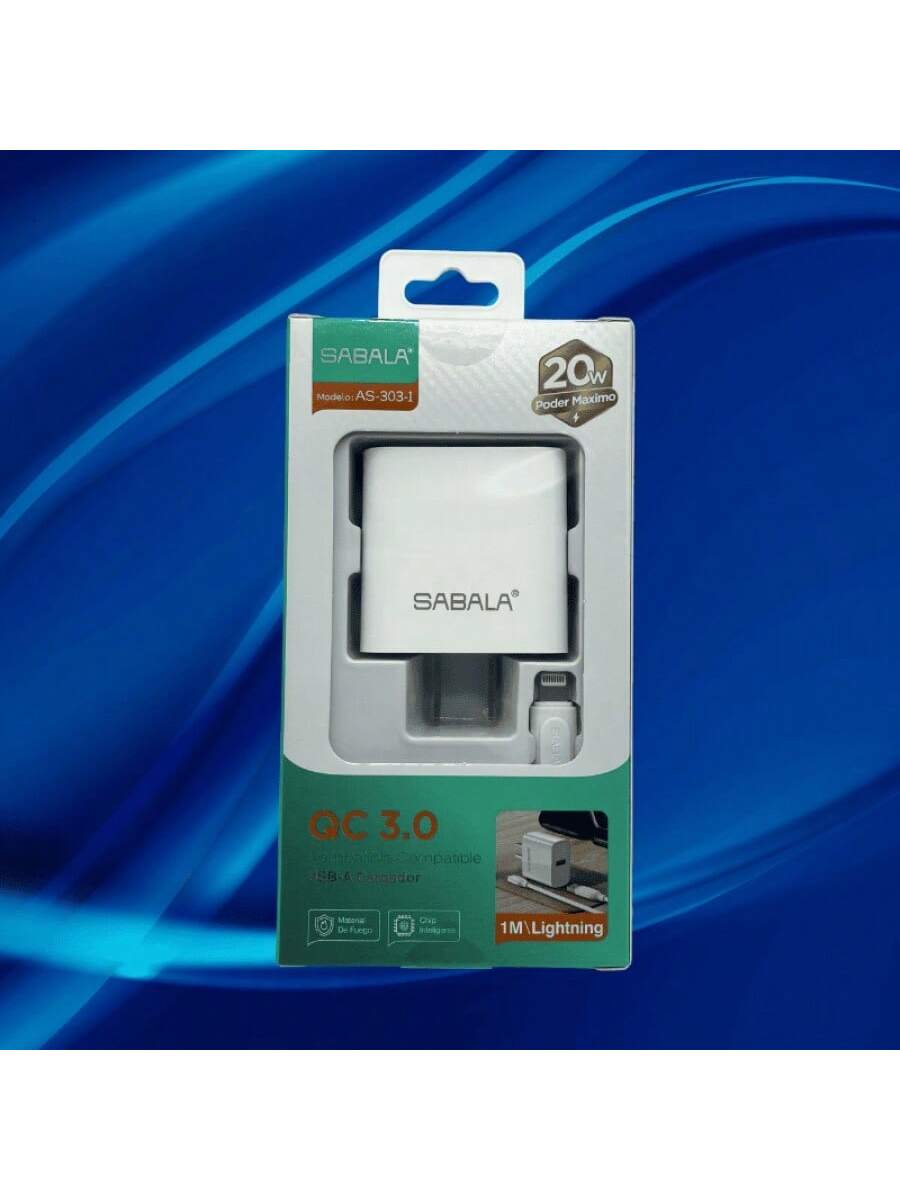 Cabezal de carga con cable IP integrado de 20W en color blanco. Proporciona una carga rápida y confiable con la comodidad de no necesitar cable adicional, en un diseño claro y moderno.