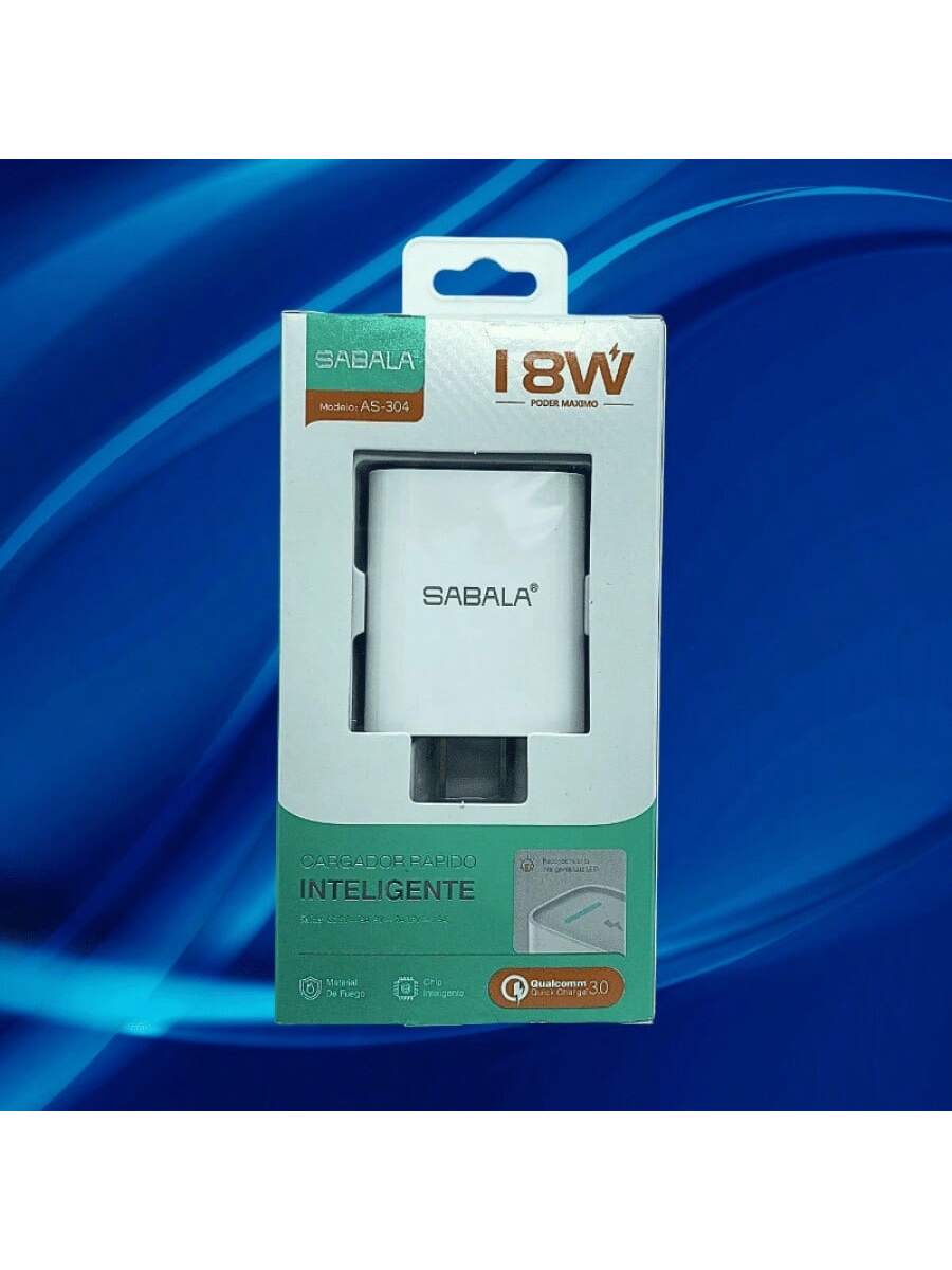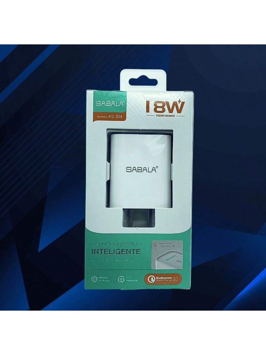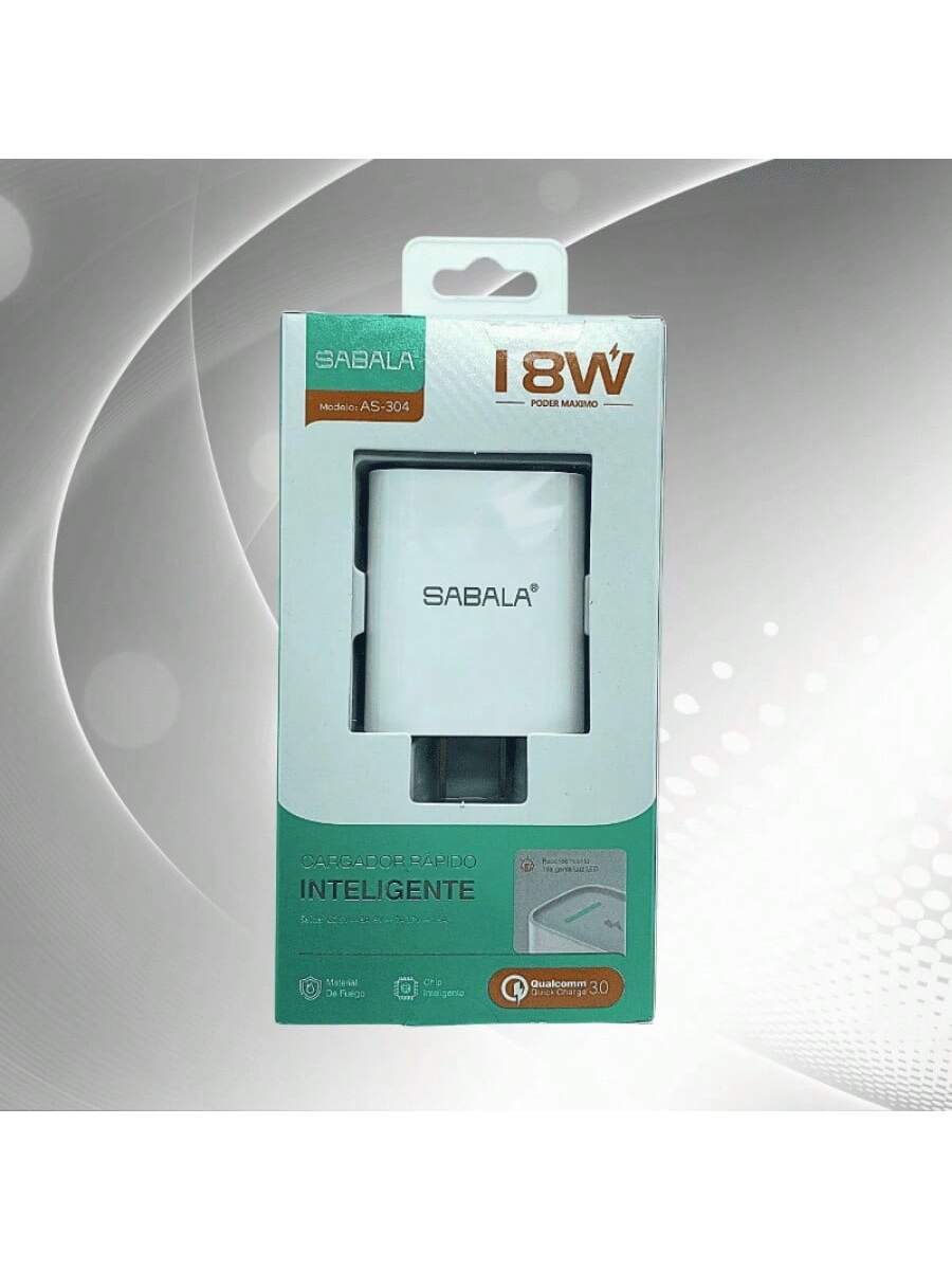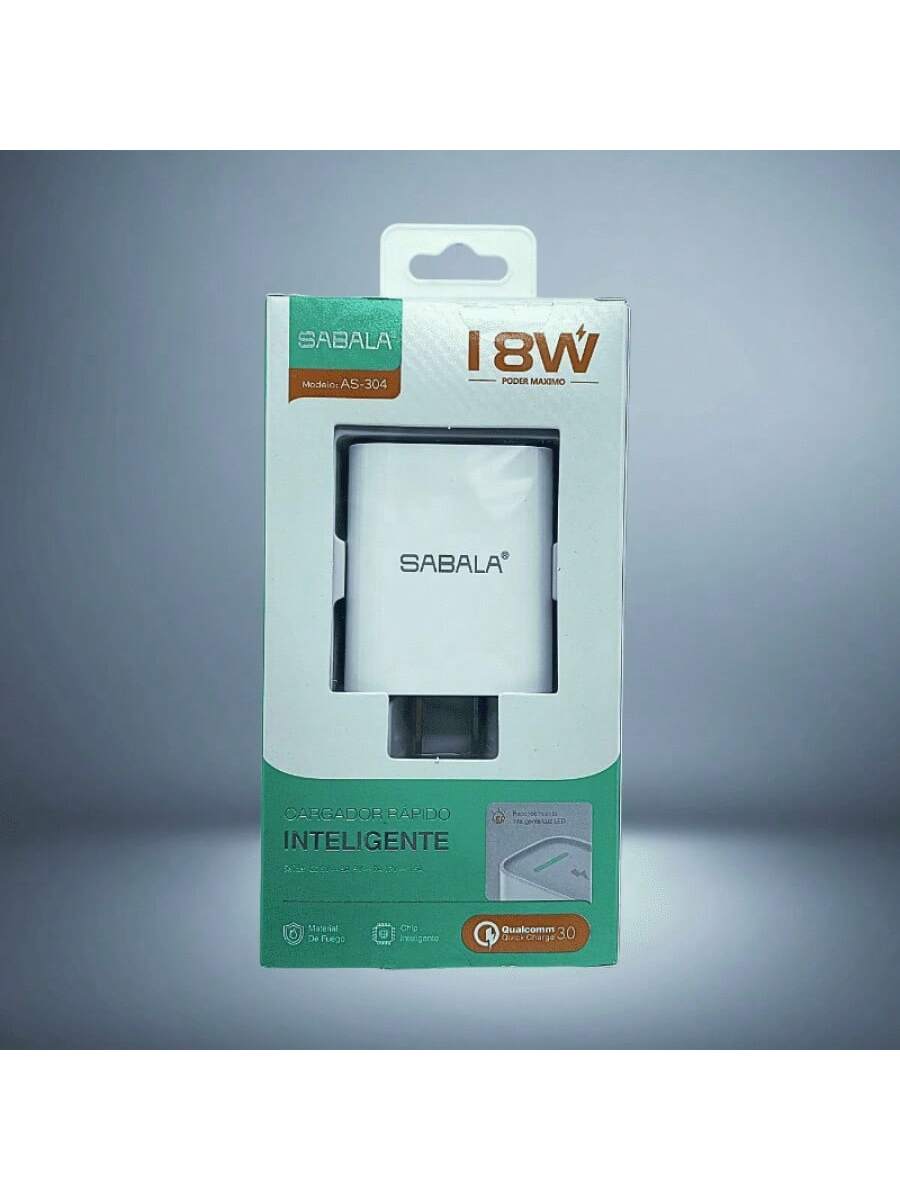 Cabezal de carga de 18W en color blanco, equilibrando potencia y eficiencia. Diseñado para ofrecer un rendimiento confiable en la carga de tus dispositivos electrónicos de uso diario.