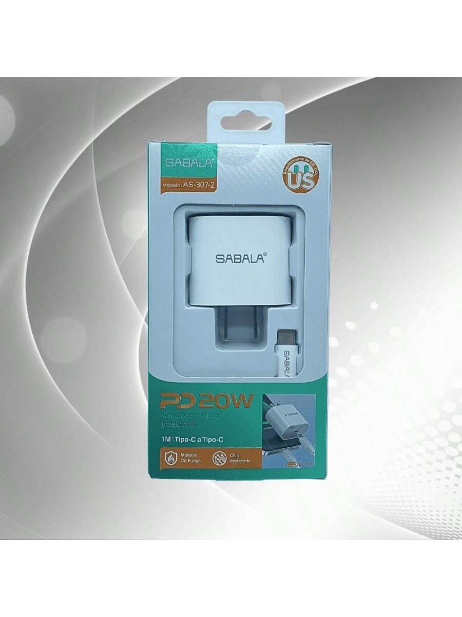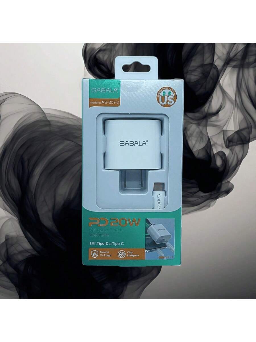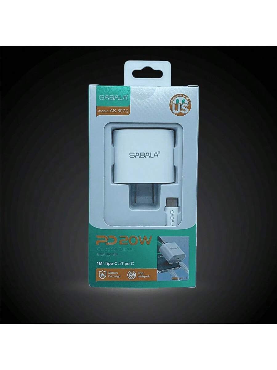 Cabezal de carga con cable TC de 20W y entrada Type-C en color blanco. Diseñado para proporcionar carga rápida through Type-C con la practicidad del cable integrado.