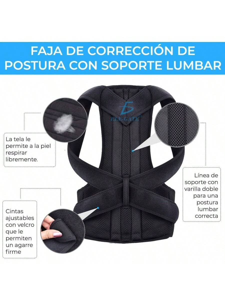 Corretor de postura ajustable para la espalda, color negro, talla M, para hombres y mujeres. Cinturón de soporte transpi