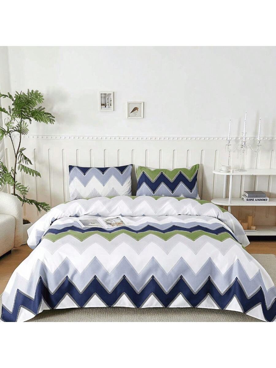 Juego de Funda Nórdica Estampado Chevron Azul y Blanco