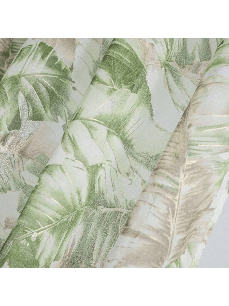 Cortinas blancas con detalles verdes y ollaos para barra. Combinación fresca y natural que evoca pureza y vitalidad, creando ambientes luminosos con toques de naturaleza en la regulación lumínica.