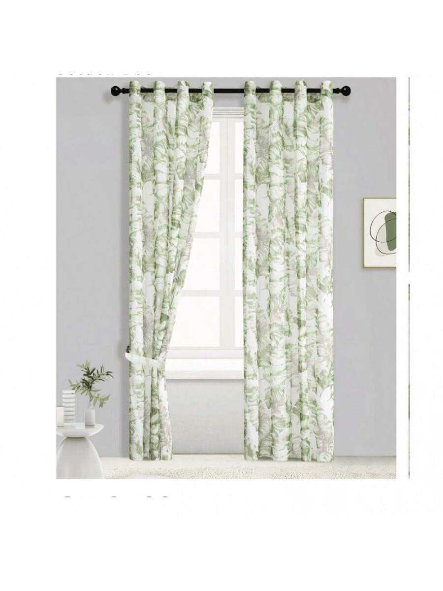 Juego de Cortinas Blancas con detalles verdes con Ollaos para Barra