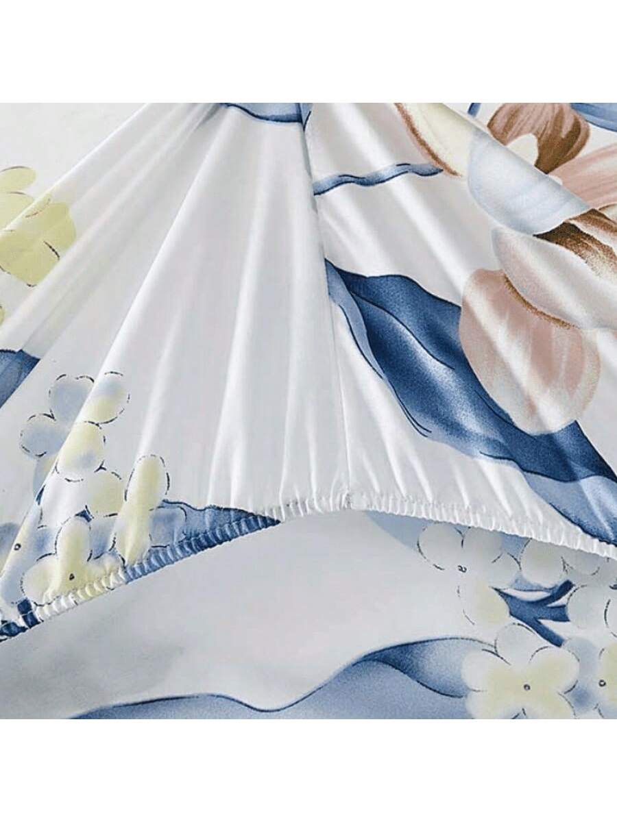 Funda nórdica con estampado floral en tonos azules. Combinación serena que une la belleza de las flores con la tranquilidad del azul, ideal para crear ambientes relajantes y armoniosos en el dormitorio.