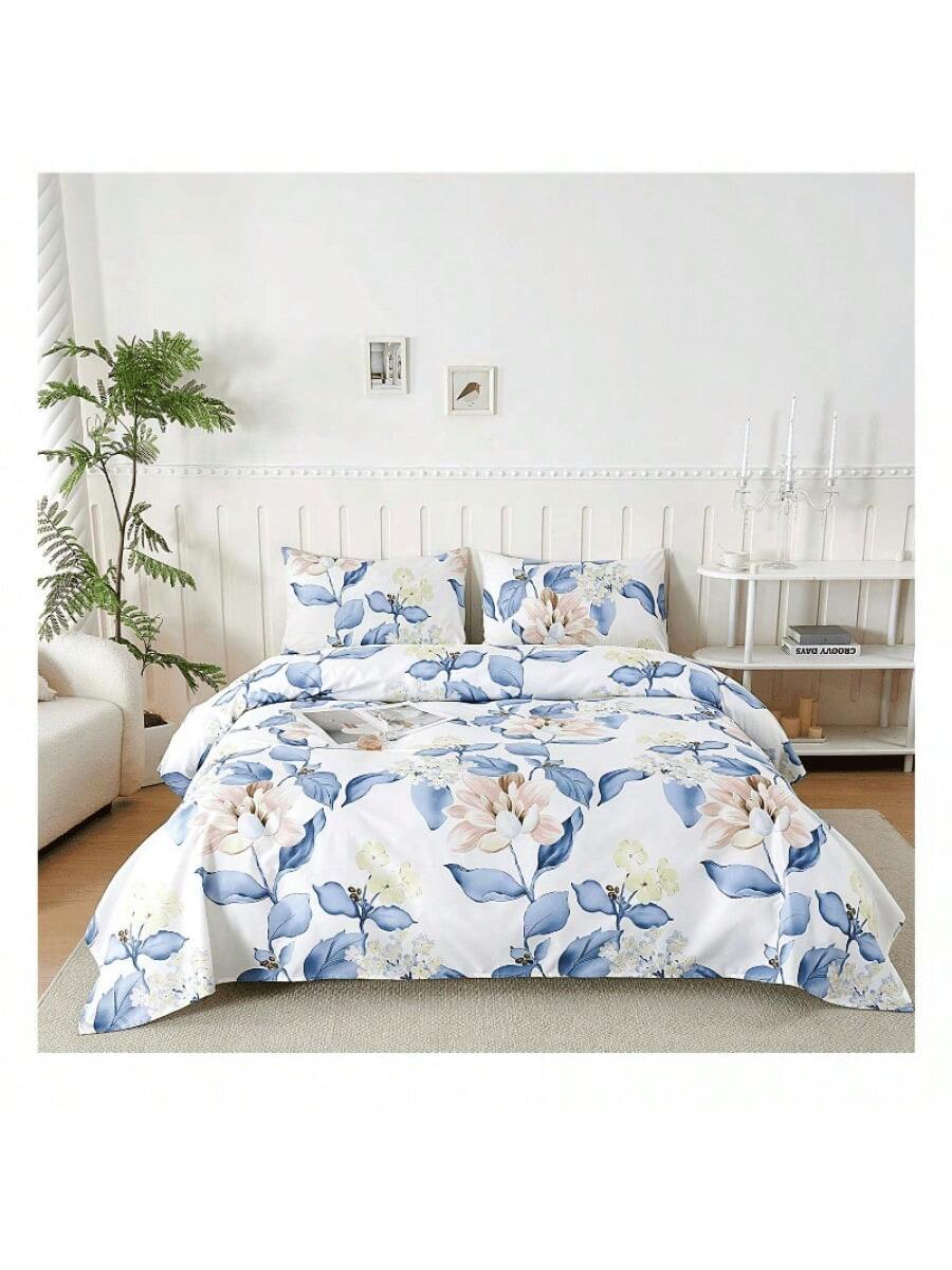 Funda nórdica con estampado floral azul. Tonos acuáticos que crean ambientes relajantes y armoniosos, ideal para dormitorios que buscan combinar elegancia y tranquilidad en su decoración nocturna.