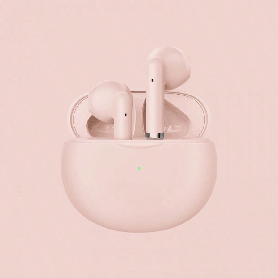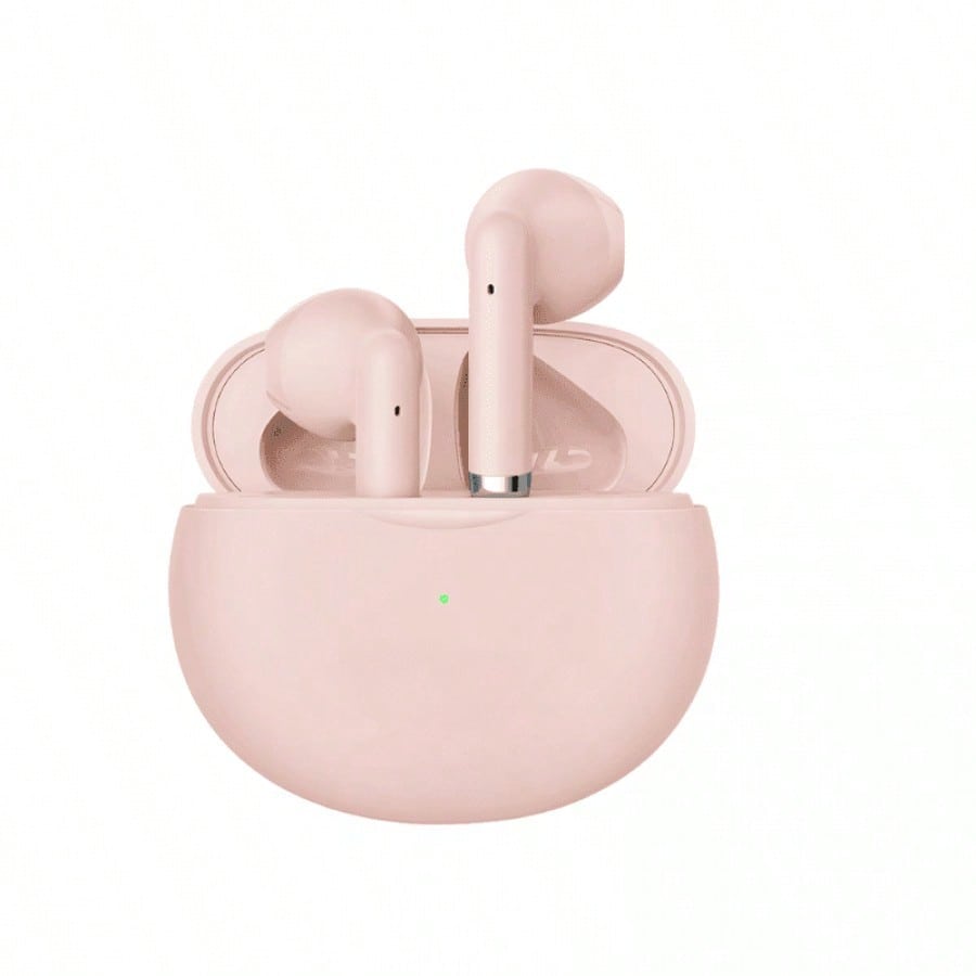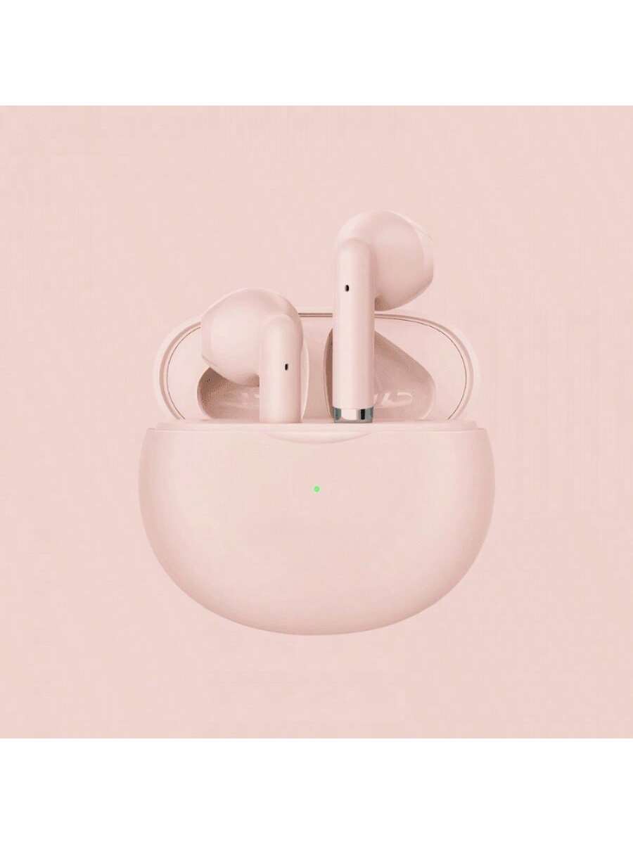 Auriculares Bluetooth en color rosa con tecnología inalámbrica para mayor libertad de movimiento. Proporcionan una experiencia auditiva satisfactoria con un diseño cómodo y estilo moderno.