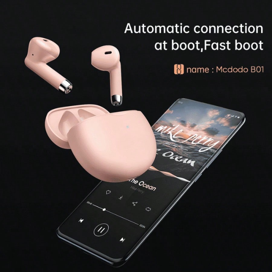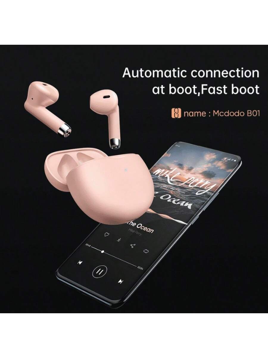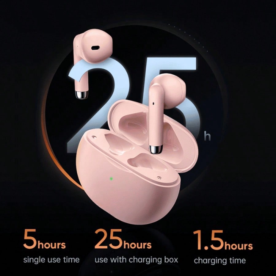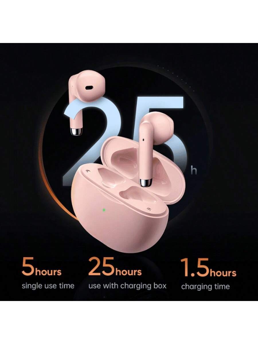 Auriculares Bluetooth en color rosa con tecnología inalámbrica para mayor libertad de movimiento. Proporcionan una experiencia auditiva satisfactoria con un diseño cómodo y estilo moderno.