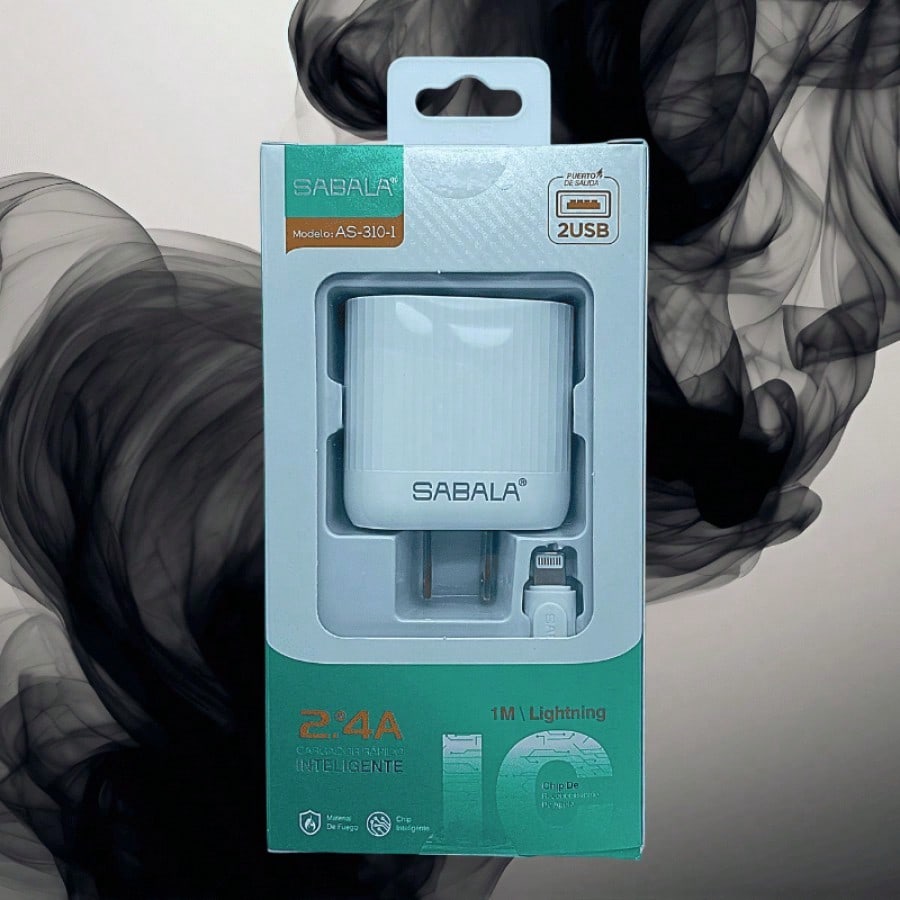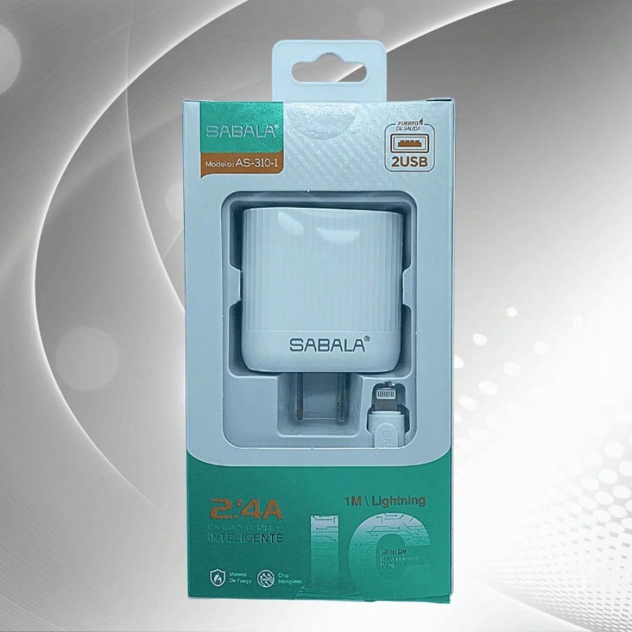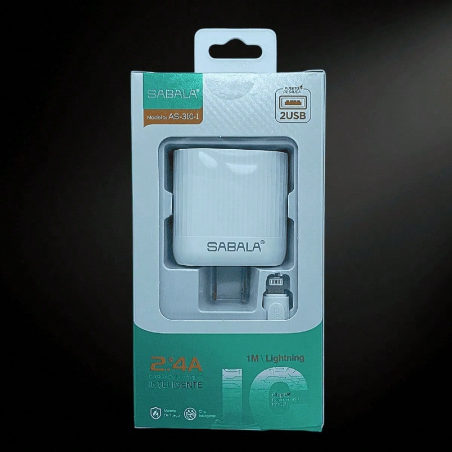 Cabezal de carga con cable IP integrado de 15W en blanco. Ofrece una solución práctica para carga básica con la conveniencia de no necesitar cable adicional para su funcionamiento.