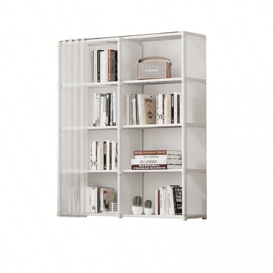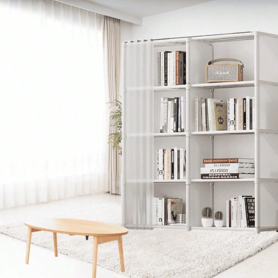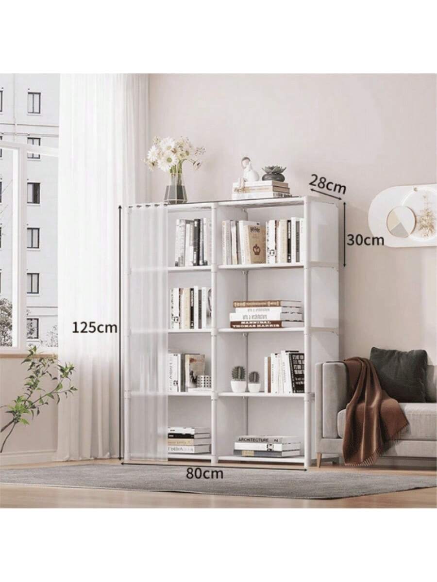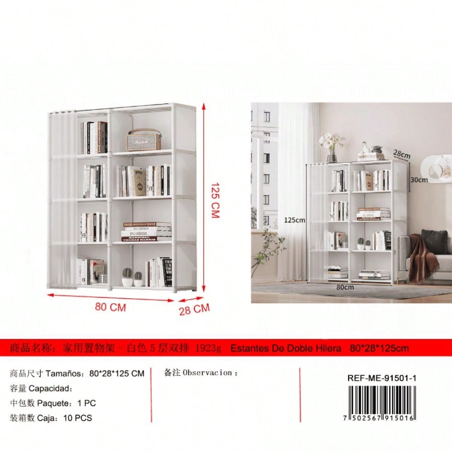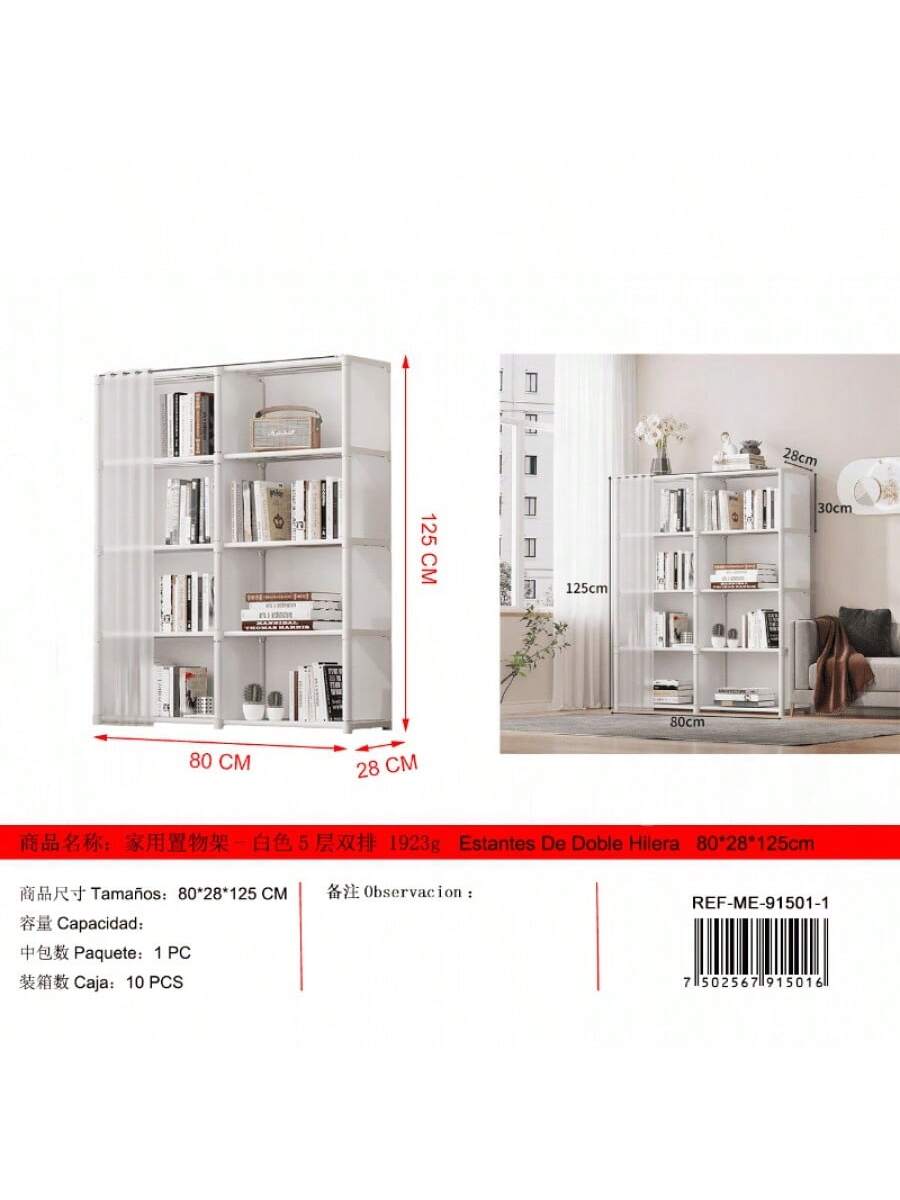 Estantería de almacenamiento blanca con 5 niveles y diseño de doble fila. Amplia capacidad para organizar diversos objetos del hogar, ideal para optimizar espacios en cualquier habitación con un estilo limpio y funcional.