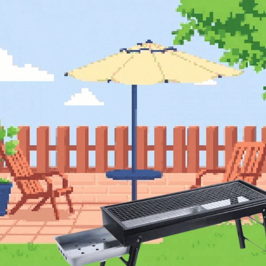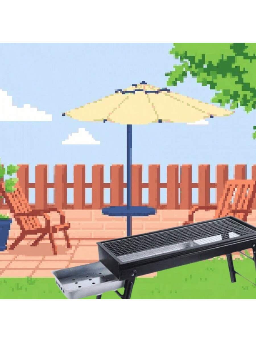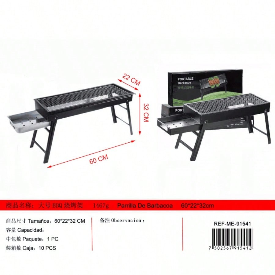 Parrilla de barbacoa de gran tamaño, ideal para preparar alimentos al aire libre. Diseño robusto que permite cocinar para varias personas, perfecta para reuniones familiares y eventos sociales en exteriores.