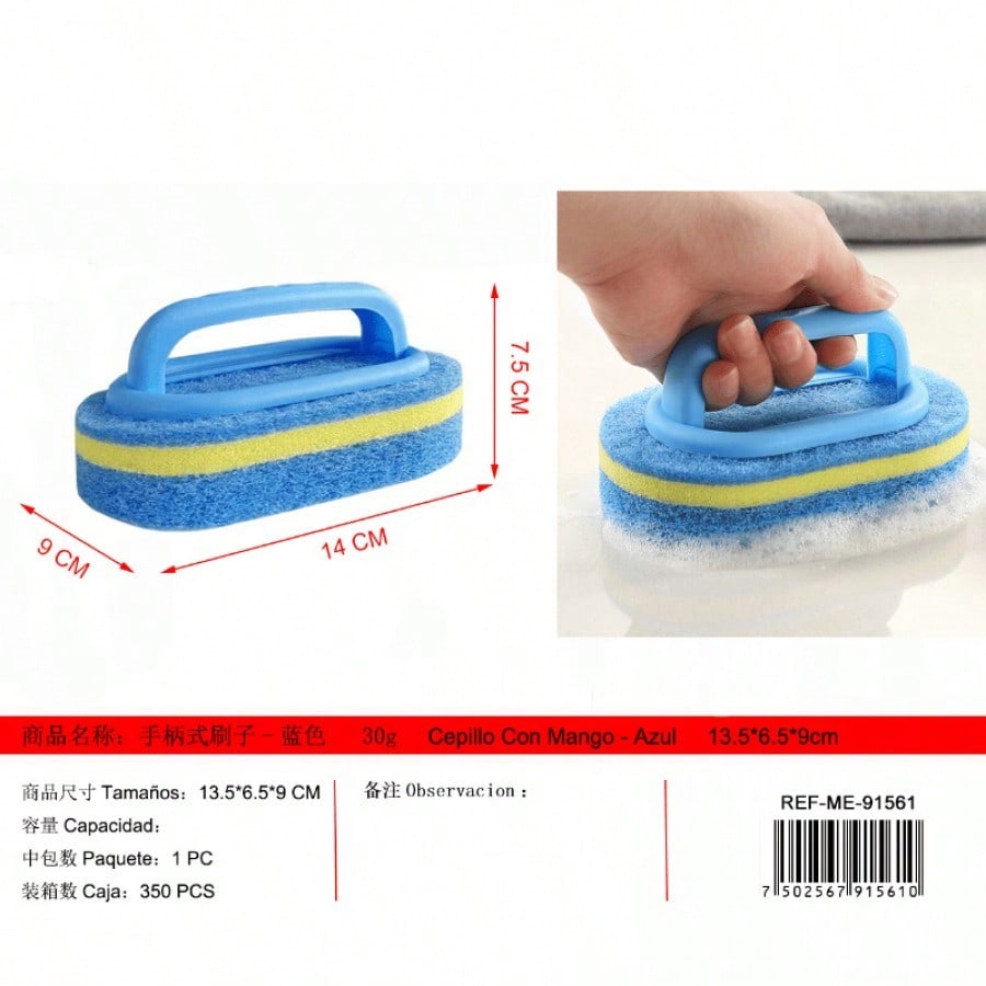 Cepillo práctico con mango de color azul, diseñado para diversas tareas de limpieza. Ergonomía que facilita su uso en múltiples superficies, ofreciendo un herramienta funcional para el mantenimiento del hogar.