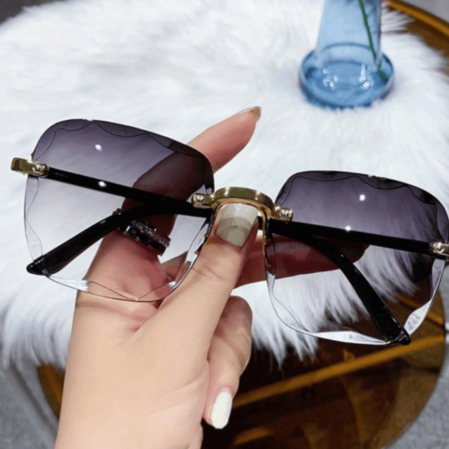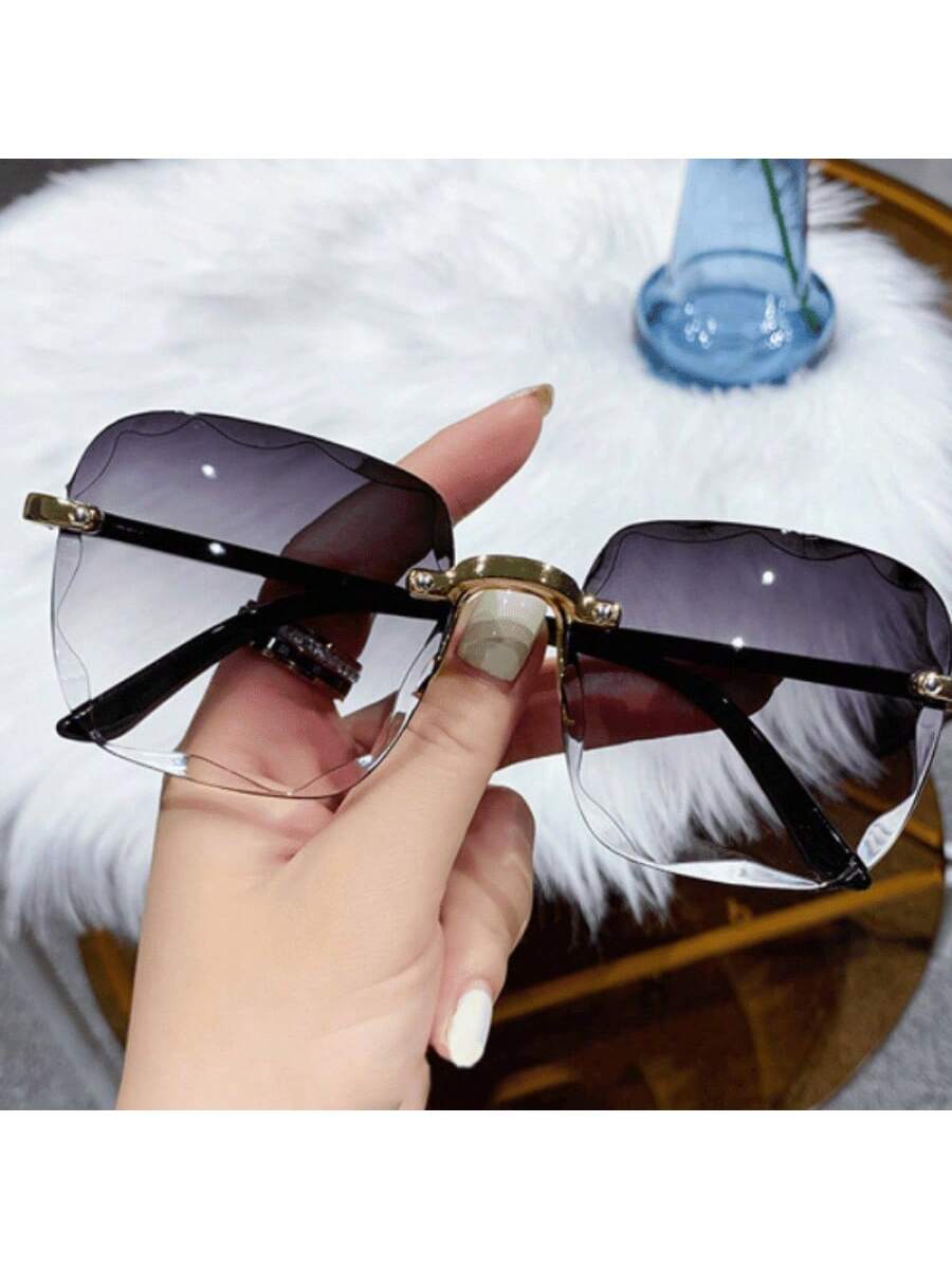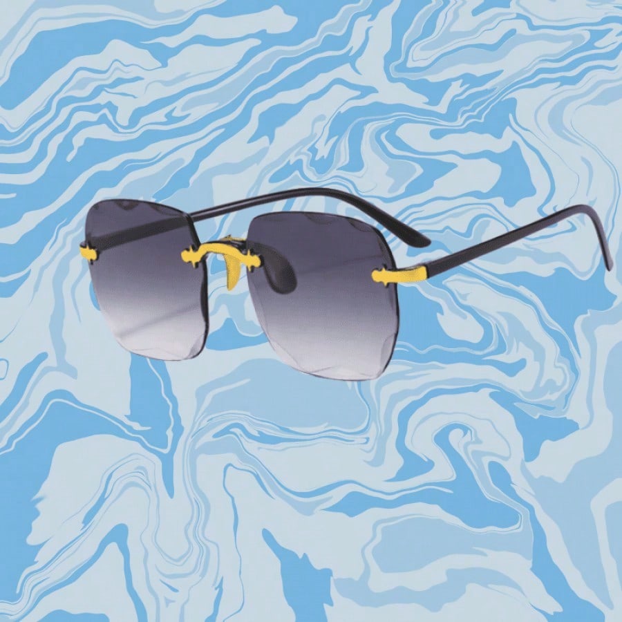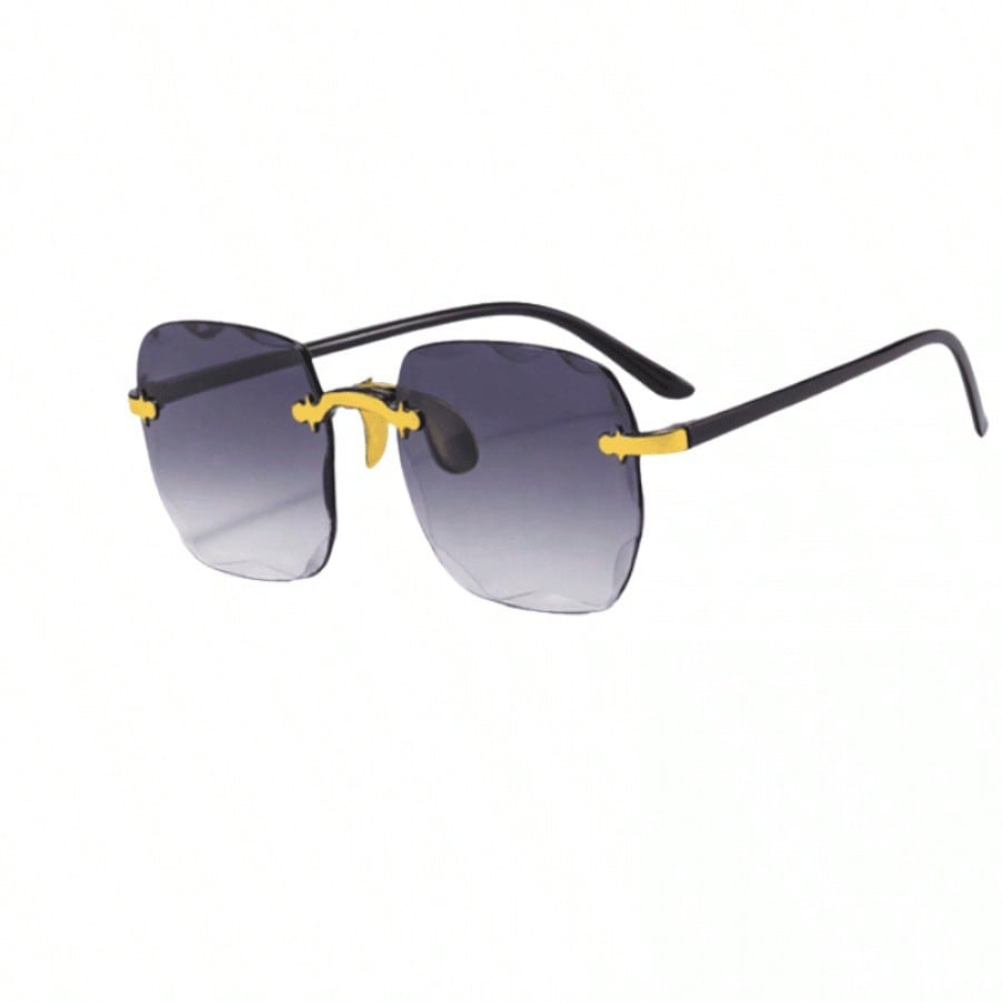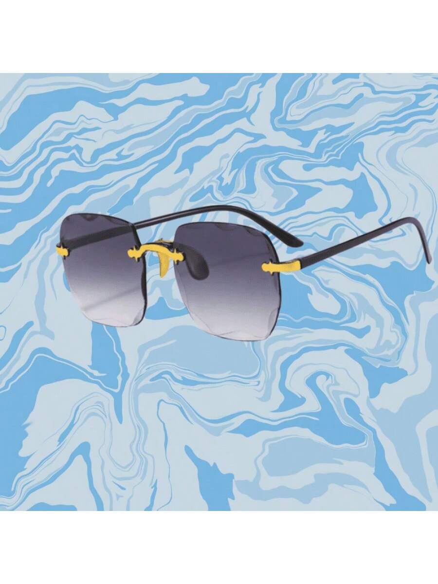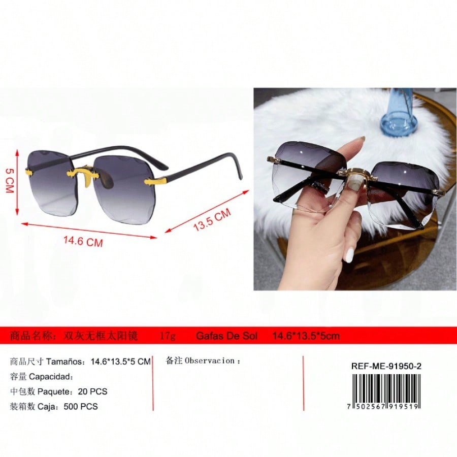 Gafas de sol sin montura en tono gris, diseño doble. Protección solar con estilo contemporáneo, perfectas para quienes buscan comodidad y elegancia en accesorios de visión.