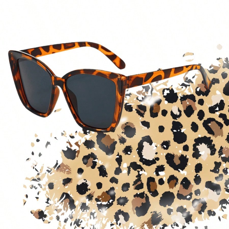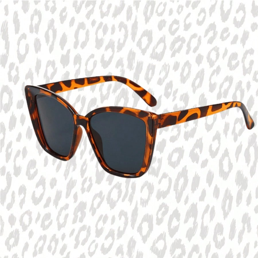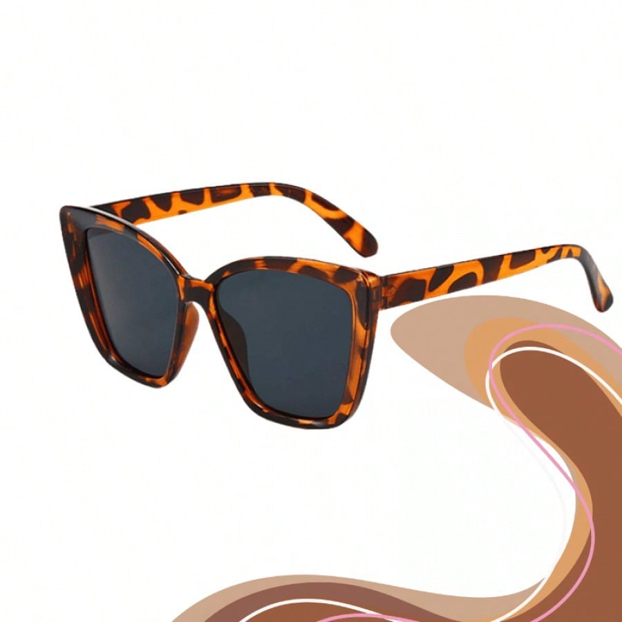 Gafas de sol con lentes grises con patrón de flor de té. Diseño decorativo que combina protección solar y elemento estético, perfecto para looks femeninos y delicados.