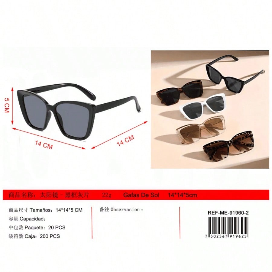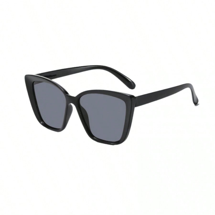 Gafas de sol clásicas con montura negra y lentes grises. Combinación atemporal que proporciona protección UV confiable, ideal para uso diario con estilo versátil.
