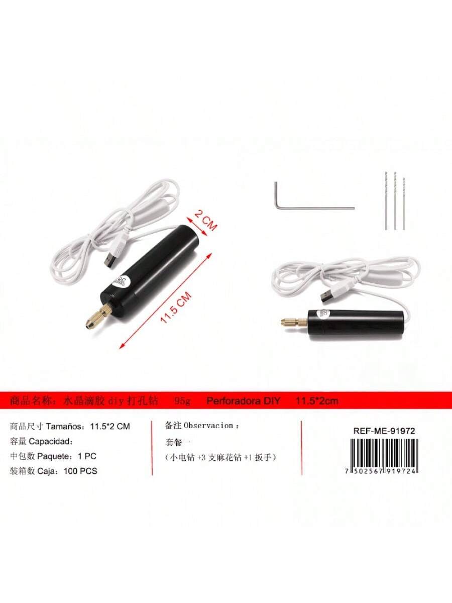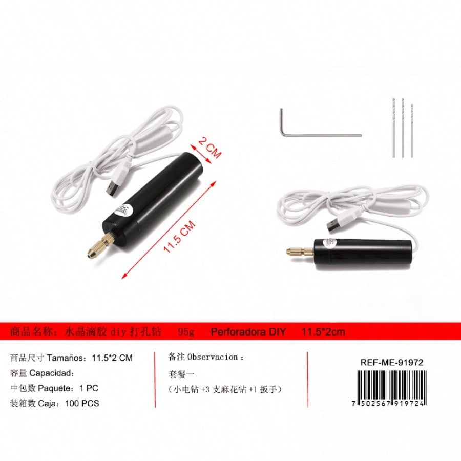 Kit bricolaje para epoxi de cristal incluye taladro pequeño, 3 brocas y llave inglesa. Ideal proyectos creativos y reparaciones domésticas.