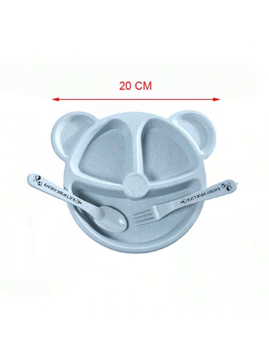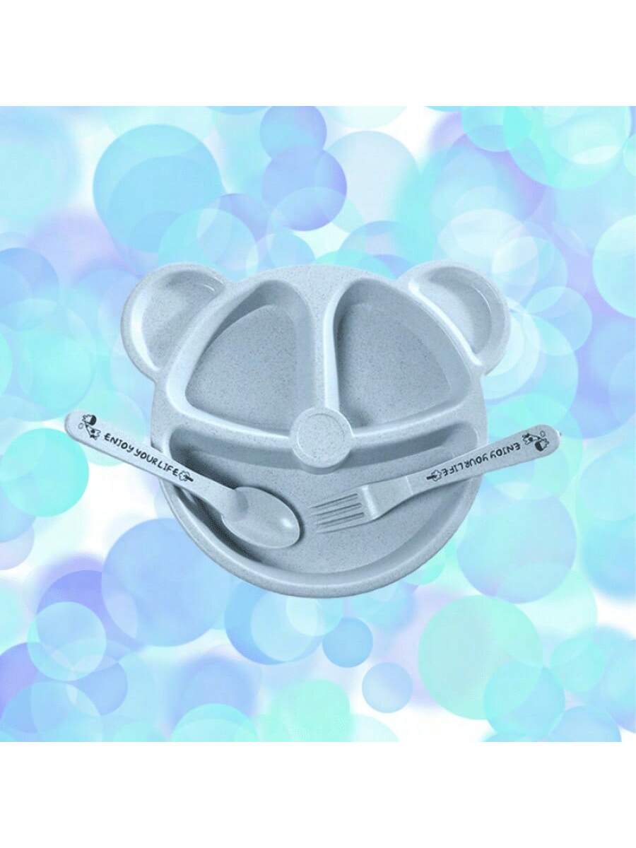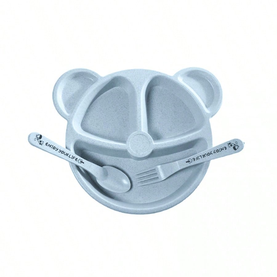 Juego de 3 platos divididos azules para niños. Diseño funcional que organiza comidas infantiles, perfecto para facilitar la alimentación de los pequeños con estilo colorido.