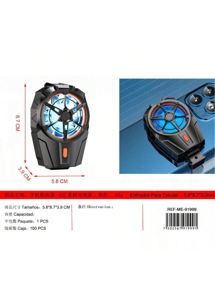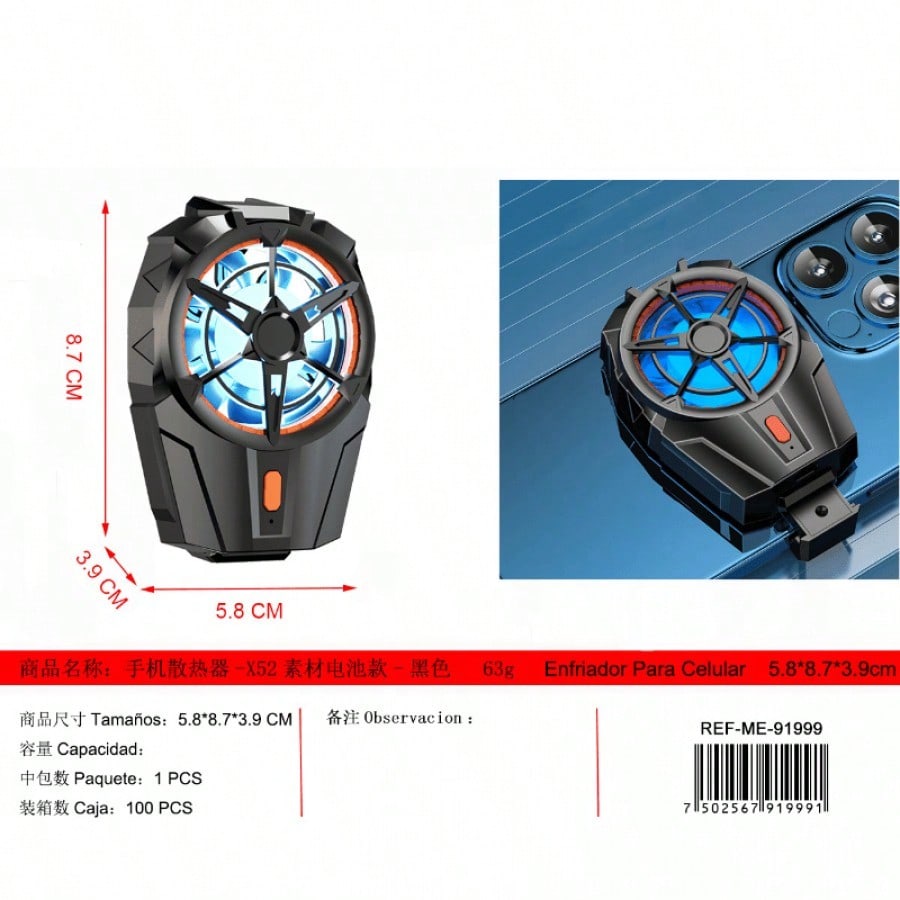 Radiador para móvil modelo X52 color negro. Disipa calor eficientemente durante uso intensivo o carga. Diseño compacto que mejora rendimiento de dispositivos.